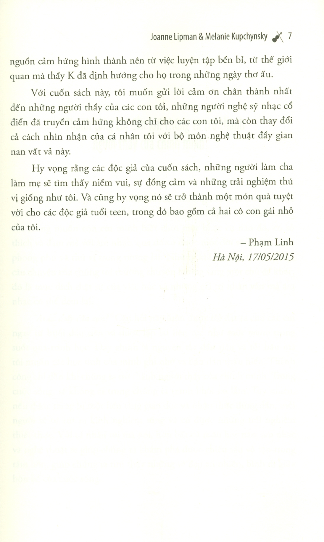 "Có những người bước vào cuộc sống của ta, để lại những dấu ấn trong trái tim ta, và làm chúng ta hoàn toàn thay đổi." – Franz Peter Schubert Đó thực sự là một điều kỳ lạ. Trong khi thầy K đang toát mồ hôi, phun nước bọt phì phì và giậm chân trên bục chỉ huy, tôi thấy mình như tan biến vào âm nhạc với cảm giác tràn trề hạnh phúc. Những đứa chơi viola phía trước đang lắc lư theo nhịp. Xung quanh tôi, những đứa khác cũng đang làm như vậy. Thầy K đã thực hiện được một điều bất khả thi: khiến cho chúng tôi trở nên giỏi hơn cả khả năng của mình. Thật là một cảm giác phi thường, khi ta nhận ra rằng mình đã vượt qua được giới hạn của bản thân. Có thể thầy K hiểu rõ điều này. Còn chúng tôi chỉ là những người thực hiện. Chúng tôi không thể tin được mình đang làm gì và cảm thấy vui sướng đến mức nào. Và rõ ràng khán giả cũng không thể tin được điều này. Nó thực sự tuyệt vời. Nó quả thực là một điều bất khả. Nó thực điên rồ. Khi bản nhạc kết thúc, toàn bộ khán giả đều đứng lên vỗ tay không ngớt.