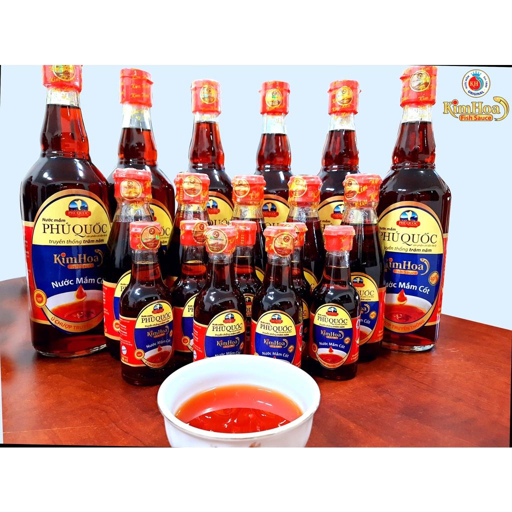 Nước mắm Phú Quốc là tên gọi chung cho các loại nước mắm được sản xuất tại Phú Quốc, một đảo lớn ở phía tây nam của Việt Nam, thuộc tỉnh Kiên Giang. Nó là một trong các loại nước mắm không những nổi tiếng ở Việt Nam mà còn được biết ở nhiều nước trên khắp thế giới. Nhà thùng Nước mắm Kim Hoa là 1 trong những nhà thùng đã có từ lâu đời tại Phú Quốc trước năm 1889, chuyên sản xuất nước mắm truyền thống, được ủ chượp bằng quy trình thủ công trong tất cả các khâu chế biến. Với tiêu chí giữ trọn hương vị truyền thống, NƯỚC MẮM CỐT KIM HOA không sử dụng chất điều vị, chất bảo quản và các phụ gia khác, đạt tiêu chuẩn vệ sinh an toàn thực phẩm HACCP. Khác với các loại nước mắm pha chế công nghiệp có sử dụng nhiều chất điều vị và phẩm màu, Nước Mắm Kim Hoa được làm 100% từ Cá Cơm tại vùng đảo Phú Quốc - là loại cá cơm giàu đạm, tươi ngon. Cá cơm sau khi được đánh bắt lên sẽ được ướp ngay trên tàu theo tỷ lệ 3 cá 1 muối, khi thuyền cập bến cá được đưa lên thùng, kiểm tra độ mặn và tiến hành gài nén - ủ chượp trong thùng gỗ đặc trưng. Quá trình này bắt buộc phải từ 12 tháng trở lên, để cá được thuỷ phân hoàn toàn, khi đó nước mắm được kéo rút ra sẽ có màu cánh gián đặc trưng, hương vị đậm đà và cái hậu ngọt của đạm cá được lắng đọng và cảm nhận rõ nơi cuống họng. Chính vì thế, nhiều khách hàng trước có thói quen sử dụng nước mắm công nghiệp khi nếm nước mắm Kim Hoa lần đầu sẽ cảm thấy mặn. Dòng sản phẩm NƯỚC MẮM CỐT 40 ĐẠM là sản phẩm nước mắm đạm cốt nguyên chất tự nhiên, không pha chế, không cô đặc, từng chai nước mắm chứa đựng cả tâm huyết và sự quan tâm đến sức khoẻ người tiêu dùng. Nhà thùng Nước mắm Kim Hoa toạ lạc tại địa chỉ: 49/2 đường Nguyễn Huệ, KP 11, Phường Dương Đông, Thành Phố Phú Quốc, tỉnh Kiên Giang. Nước Mắm Kim Hoa hi vọng được đồng hành trong mỗi bữa ăn gia đình Việt, mang đến những giây phút ngon miệng và sức khỏe cho mọi nhà