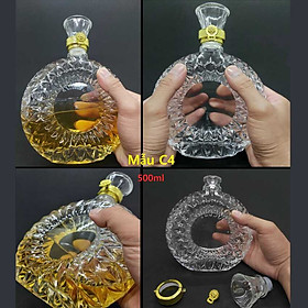 Mua tại TiktokChai Thủy Tinh Đựng Rượu 500ml cao cấp mẫu xo tròn dẹt Vỏ Chai Rượu Đẹp - Chai Đựng Rượu sang trọng (C4) Glass bottle 500ML – Ground shape - FLAT design - 1 bottle (C4 pattern)