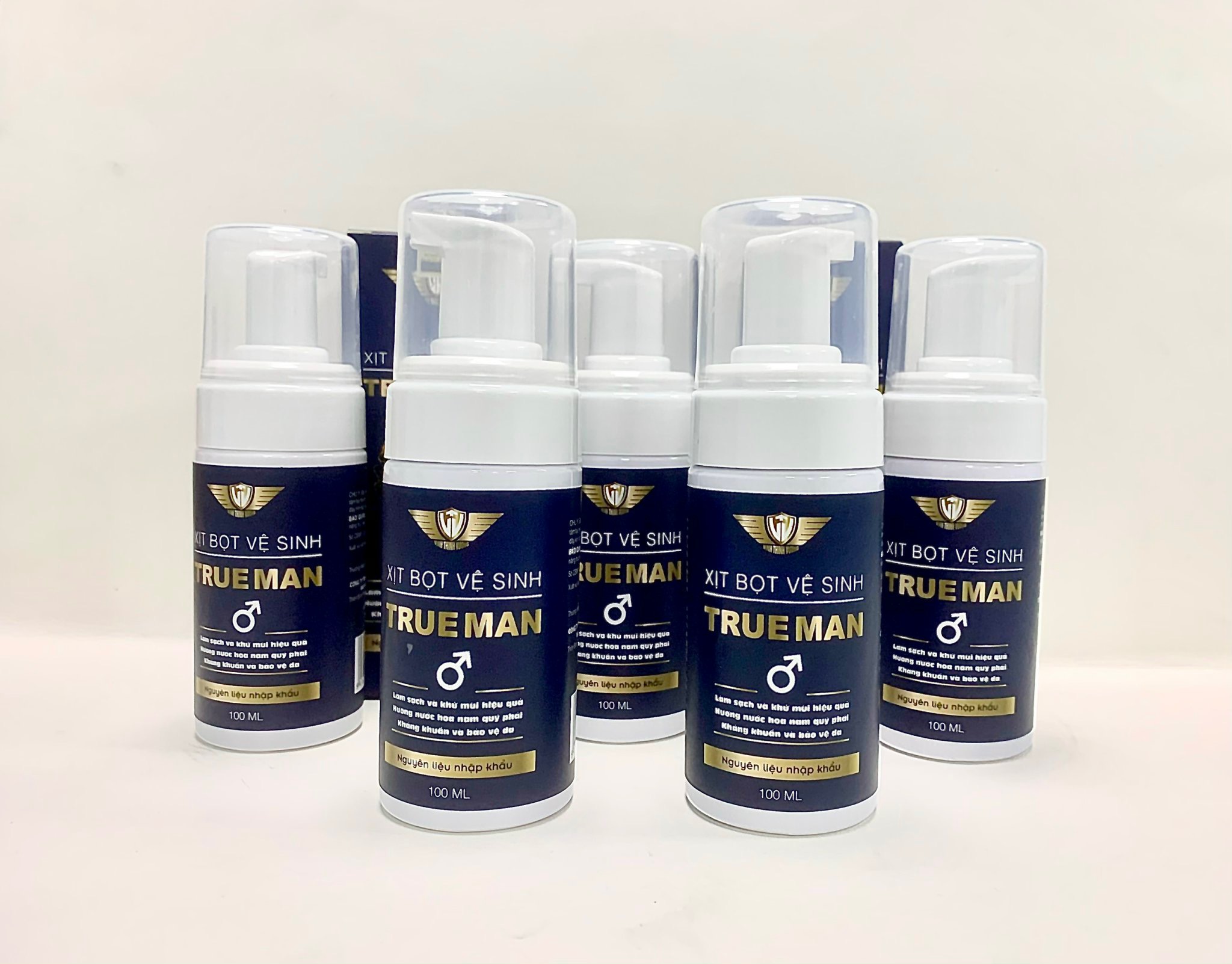 Chai xịt bọt vệ sinh nam giới True Man, 100ml, Kingphar, kháng khuẩn, nấm, khử hôi Xịt Bọt vệ sinh nam giới hương nước hoa TRUEMEN, giúp làm sạch, khử mùi, kháng khuẩn - Chai