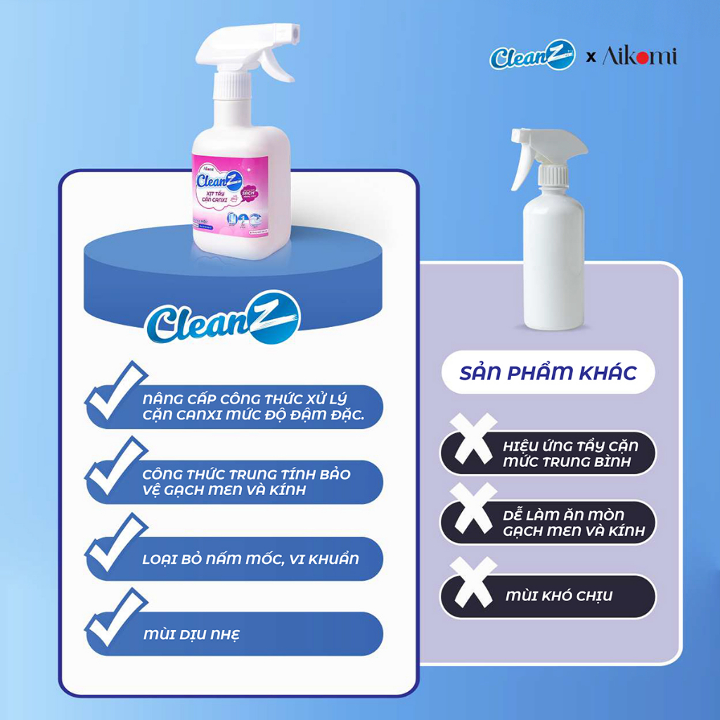 Chai xịt tẩy cặn Canxi CleanZ chống ăn mòn Inox vệ sinh vòi Rửa, vòi sen, vách kính THÔNG TIN CHI TIẾT Chai Xịt Tẩy Cặn Canxi CleanZ Chống Ăn Mòn Inox: