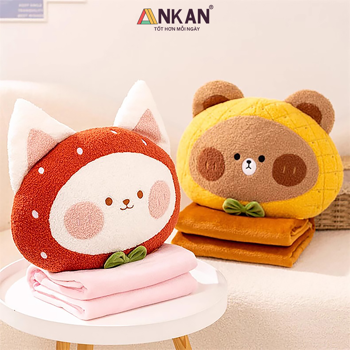 Đa số các shop bán những bộ chăn gối phổ thông để được nhiều lượt bán. Trong khi đó ANKAN đang phát triển dòng sản phẩm chăn gối văn phòng cao cấp hơn để phục vụ nhu cầu tặng quà của các bạn.
