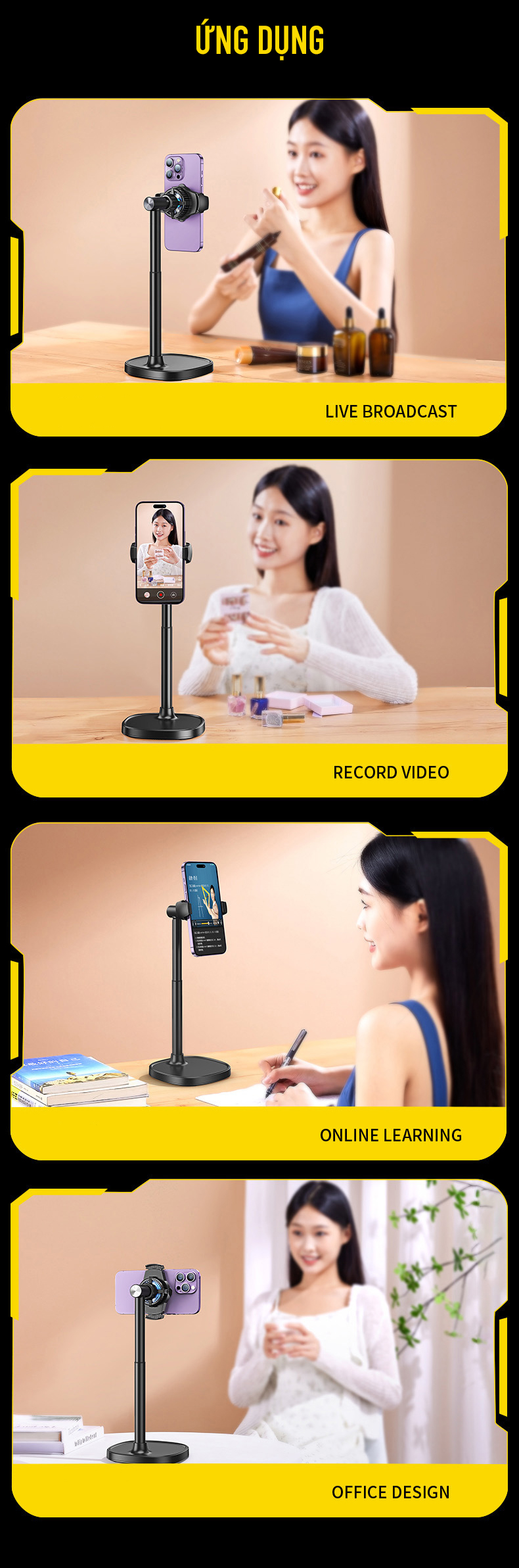 - Chân livestream điện thoại có đế làm lạnh giúp làm mát điện thoại khi livestream lâu