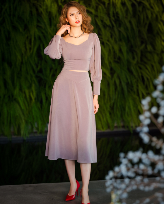 Kiểu dáng váy xoè midi dài qua bắp chân