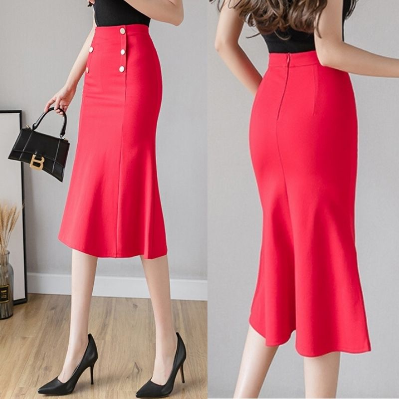 - Chân váy lưng cao, ôm body tôn dáng