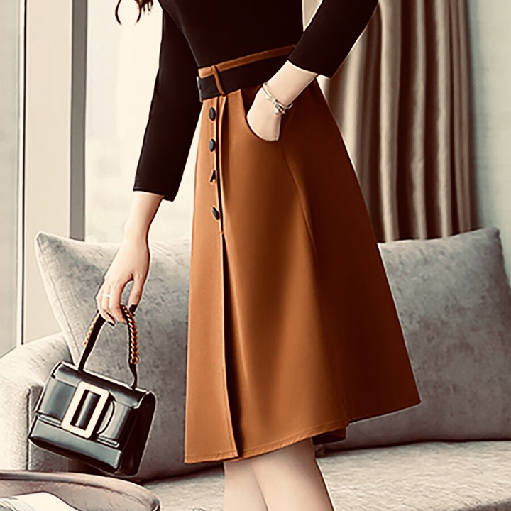✨Chân Váy Cống Sở New Design Thiết Kế Váy Chữ A ,Lệch Tà Phối Nút Có Túi Phong Cách Hàn Quốc, Vải Tốt ,Co Giãn CV0021