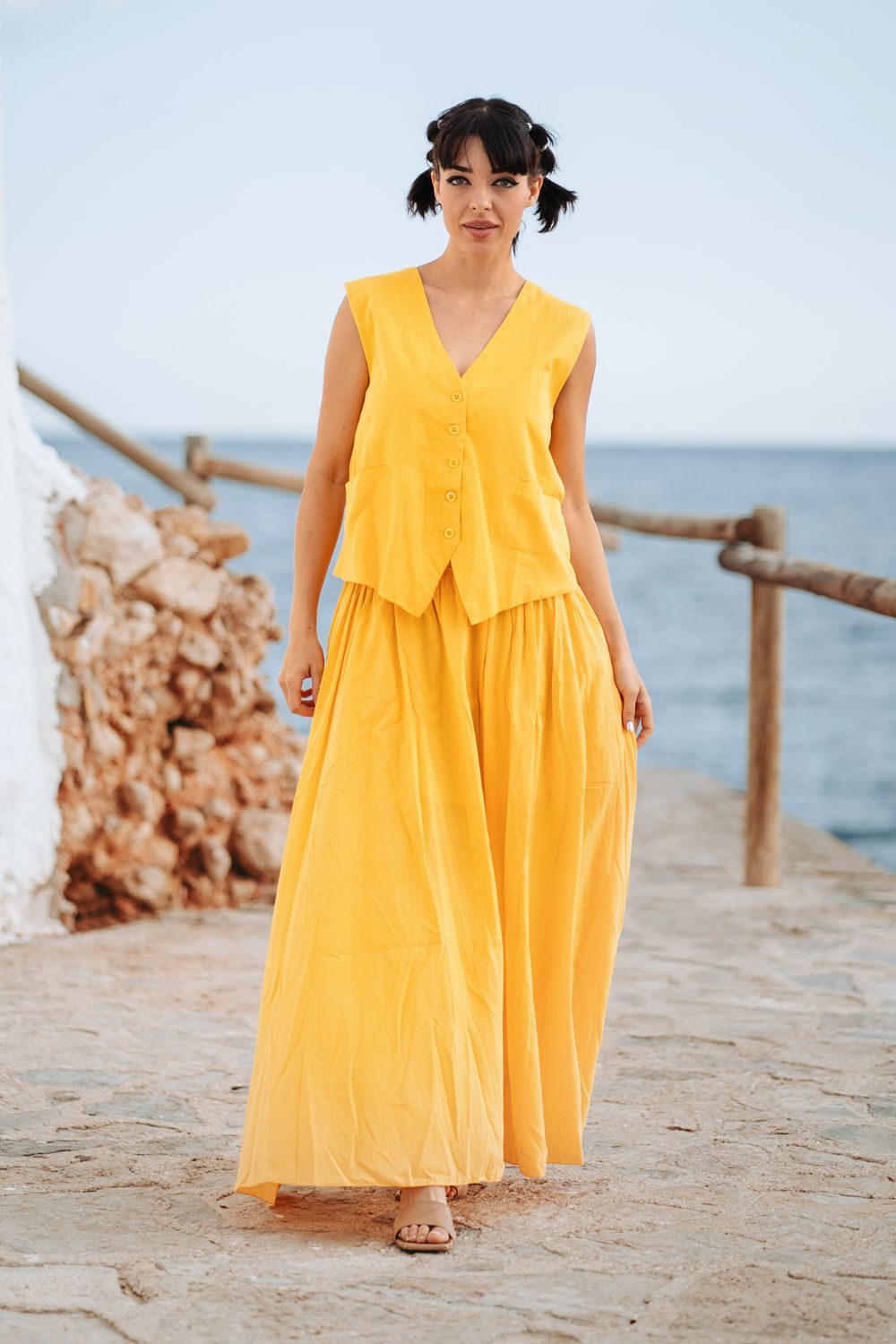 Chân Váy Boho Luna Llena, chất liệu voan lụa mềm mại cao cấp. Họa tiết thổ cẩm độc đáo kết hợp ánh kim nhẹ nhàng, nổi bật. Eo thun co giãn. Có lớp lót cotton