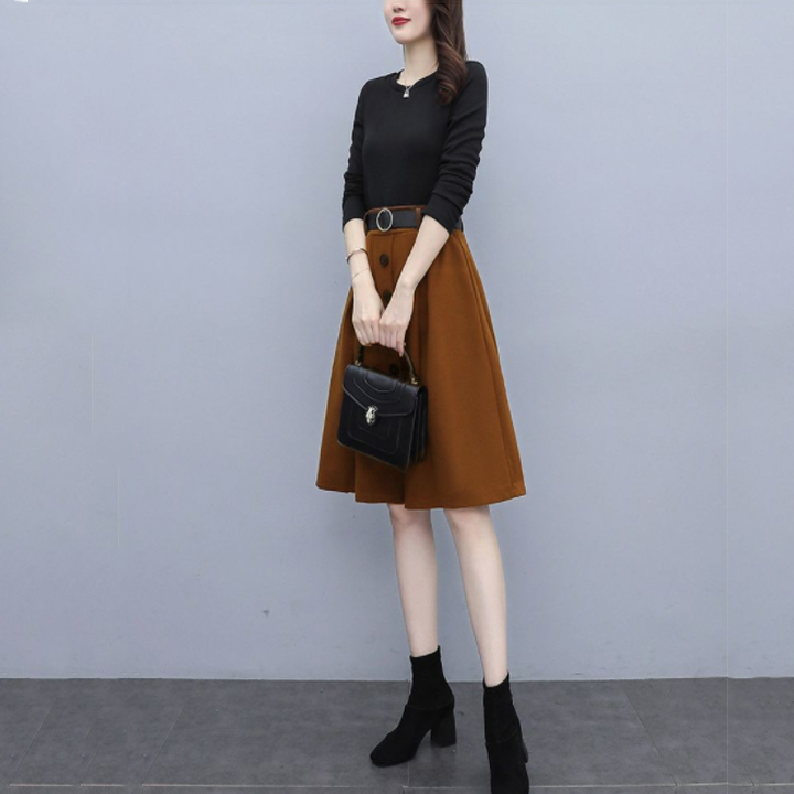 Chân Váy Xếp Ly Kèm Đai Midi Vintage Dáng Công Sở Lưng Cao