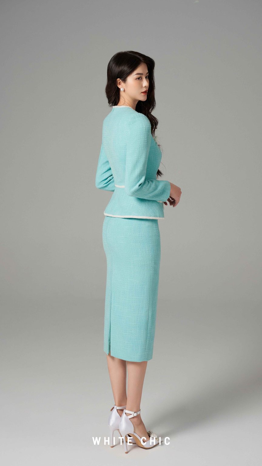 - Chi tiết sản phẩm ️ Chất liệu: Dạ Tweed ️ Màu sắc: Xanh Turquoise ️ Kiểu dáng: Chân váy