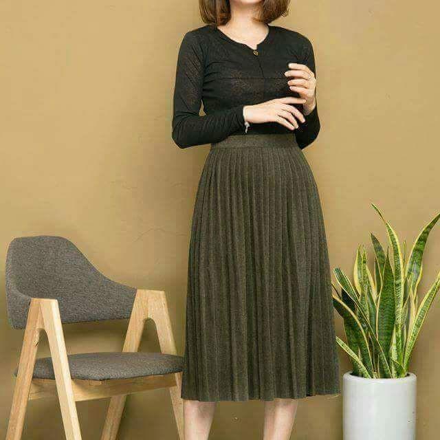 ✨Chân váy xếp li dáng dài phiên bản hè_đông_Chân váy công sở đẹp