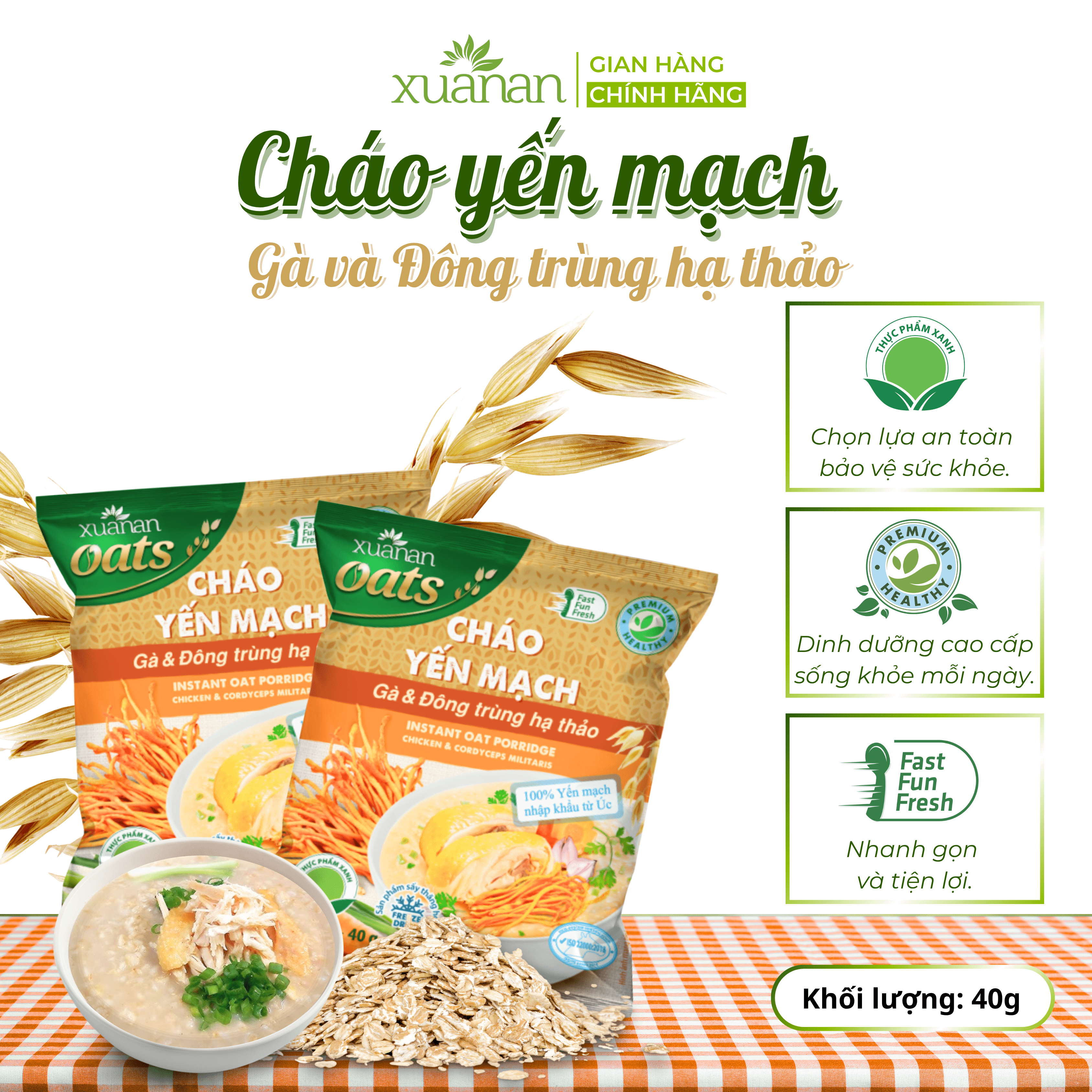 ✨Cháo Yến Mạch Thịt Gà & Đông Trùng Hạ Thảo Xuân An Gói 40G ( Mua 6 Gói Tặng Kèm 1 Gói)