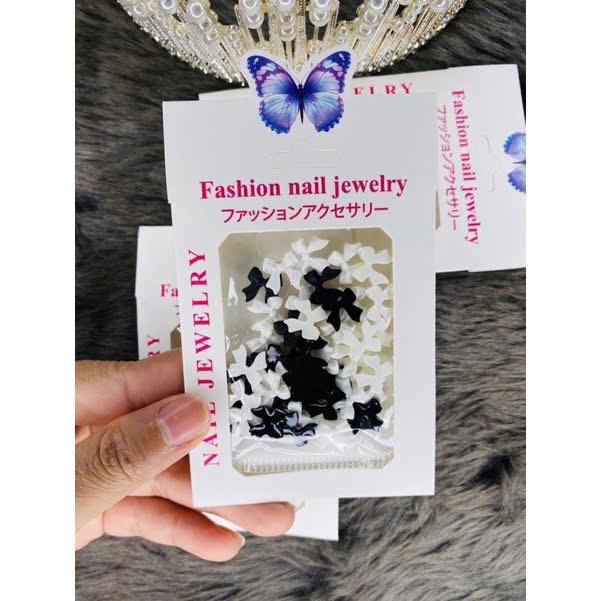 - Set nơ mix màu đen và trắng: Set này bao gồm 50 chiếc nơ nhựa mix màu đen và trắng, tạo điểm nhấn độc đáo cho móng tay của bạn.