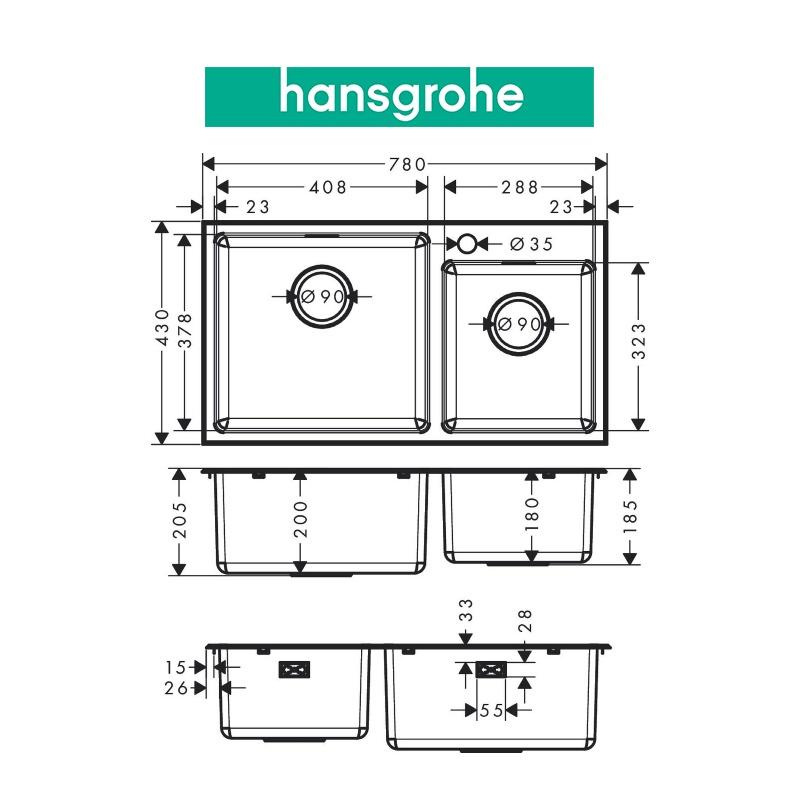 ✨Chậu bếp đôi HANSGROHE Deep Drawn Sink S431-F730 43354