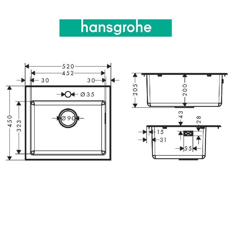 ✨Chậu bếp đơn HANSGROHE Deep Drawn Sink S431-F400 43353