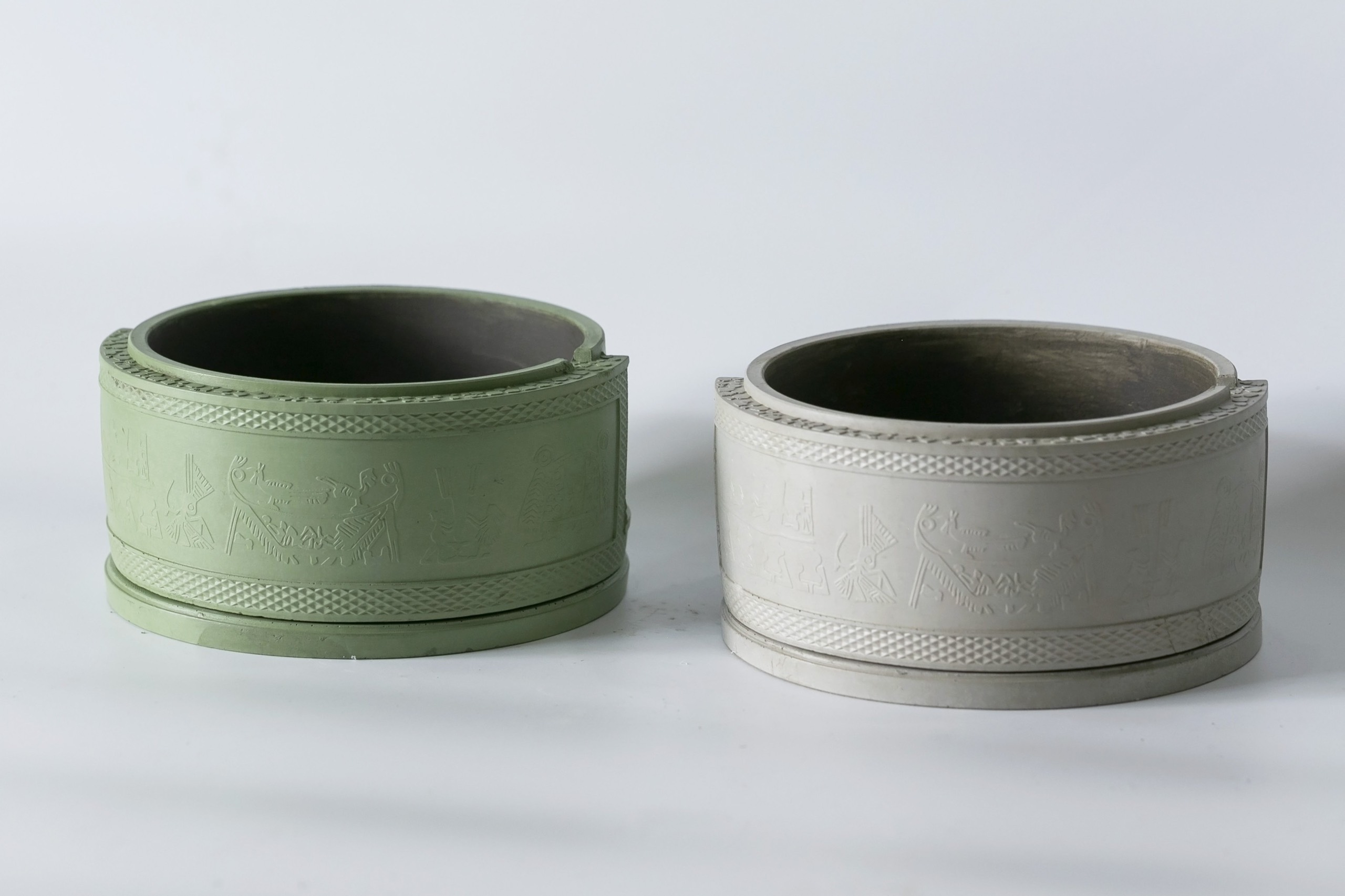 Chậu cây xi măng bậc thang với trang trí hoạ tiết Trống Đồng Đông Sơn, đường kính 18.4cm cao 8,5 cm, Hàng thủ công mỹ nghệ, quà tặng cao cấp, decor bàn làm việc, cây văn phòng, nhà ở