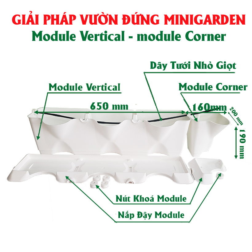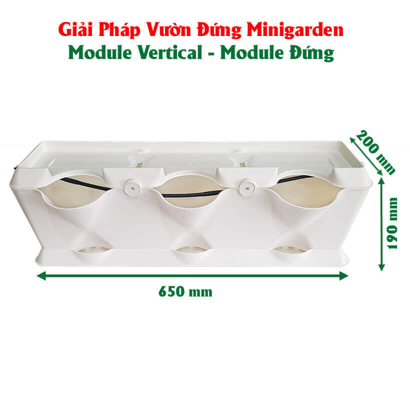 Lắp ghép với nhau theo chiều thẳng đứng. Dưới dáy Module là hệ thống “thoát nước” cực tốt, đảm bảo cây trồng không bị động rễ và thối rễ nếu tưới nhiều nước
