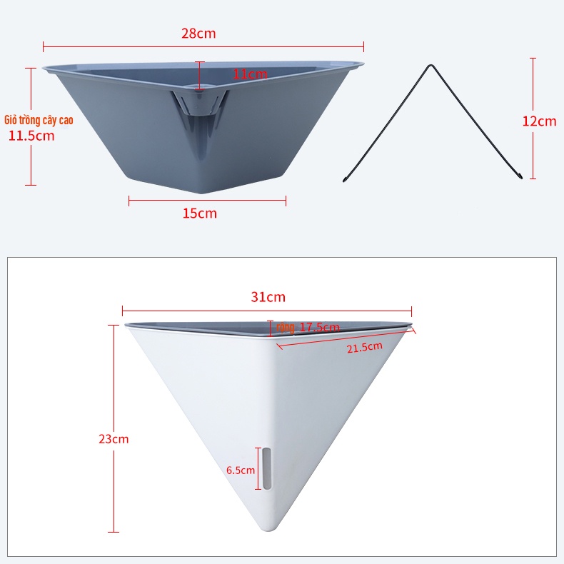 DOCNEEM XIN GIỚI THIỆU ĐẾN BẠN MÃ SẢN PHẨM - CHẬU TRỒNG CÂY TỰ TƯỚI TREO TƯỜNG TAM GIÁC THÔNG MINH MONROVIA K104 _ Chất liệu: PP cao cấp _ Cấu tạo: Chậu bao gồm