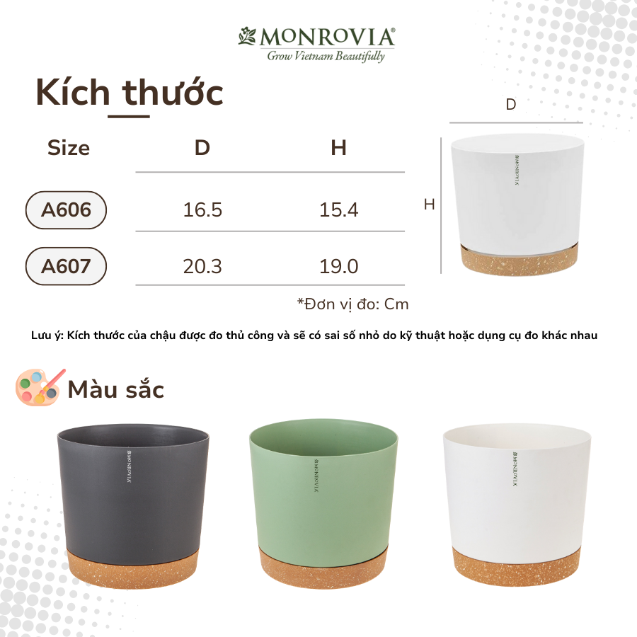 DOCNEEM XIN GIỚI THIỆU ĐẾN BẠN MÃ SẢN PHẨM - CHẬU TRỒNG CÂY TỰ TƯỚI ĐỂ BÀN THÔNG MINH KIỂU DÁNG TRÒN MONROVIA I0 _ Chất liệu: PP cao cấp _ Cấu tạo: Chậu bao