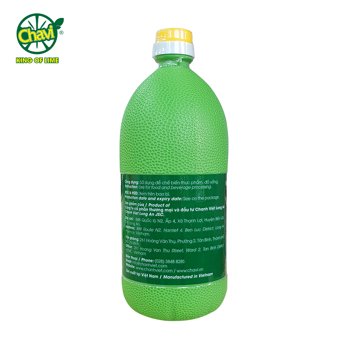 Mua tại TiktokNhững quả chanh không hạt tại Nông trại Chanh Việt được trồng theo tiêu chuẩn châu Âu đảm bảo xanh, sạch và an toàn. Sau khi thu hoạch, chanh sẽ được rửa sạch, phân loại, gọt vỏ và ép thành nước. Sau đó nước cốt chanh sẽ được đi qua hệ thống thanh trùng, lọc và chiết rót thành sản phẩm hoàn chỉnh. Nước cốt chanh 100A CHAVI là nguyên liệu được sử dụng nhiều trong ngành thực phẩm và nước giải khát.