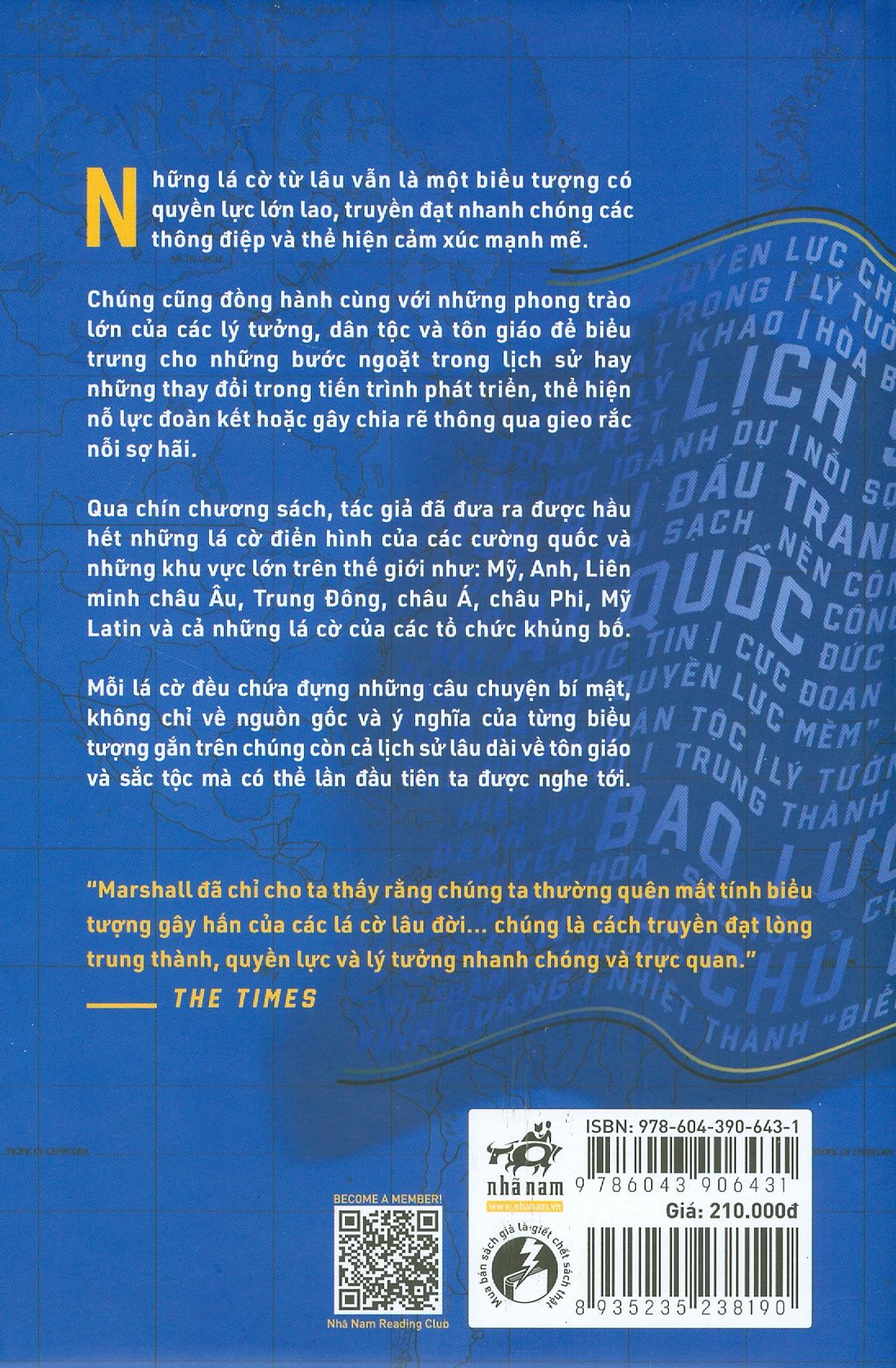 Chết Cho Màu Cờ - Quyền Lực Và Chính Trị Của Những Lá Cờ - Bìa Cứng Những lá cờ từ lâu vẫn là một biểu tượng có quyền lực lớn lao, truyền đạt nhanh chóng các thông điệp và thể hiện cảm xúc mạnh mẽ. Chúng cũng đồng hành cùng với những phong trào lớn của các lý tưởng, dân tộc và tôn giáo để biểu trưng cho những bước ngoặt trong lịch sử hay những thay đổi trong tiến trình phát triển, thể hiện nỗ lực đoàn kết hoặc gây chia rẽ thông qua gieo rắc nỗi sợ hãi. Qua chín chương sách, tác giả đã đưa ra được hầu hết những lá cờ điển hình của các cường quốc và những khu vực lớn trên thế giới như: Mỹ, Anh, Liên minh châu Âu, Trung Đông, châu Á, châu Phi, Mỹ Latin và cả những lá cờ của các tổ chức khủng bố. Mỗi lá cờ đều chứa đựng những câu chuyện bí mật, không chỉ về nguồn gốc và ý nghĩa của từng biểu tượng gắn trên chúng còn cả lịch sử lâu dài về tôn giáo và sắc tộc mà có thể lần đầu tiên ta được nghe tới. “Marshall đã chỉ cho ta thấy rằng chúng ta thường quên mất tính biểu tượng gây hấn của các lá cờ lâu đờ chúng là cách truyền đạt lòng trung thành, quyền lực và lý tưởng nhanh chóng và trực quan.” – The Times (UK) Tim Marshall là ký giả người Anh có hơn 25 năm kinh nghiệm về tin tức đối ngoại. Ngoài vai trò ký giả và biên tập viên, Marshall còn là nhà bình luận khách mời về các sự kiện thế giới cho BBC, Sky News. Ông là tác giả của nhiều cuốn sách bán chạy, trong đó nổi tiếng nhất là Những tù nhân của địa lý, được xếp vào danh sách bán chạy của The New York Times, đã được Nhã Nam xuất bản cùng hai cuốn sách nữa của ông: Chia rẽ và Quyền lực của địa lý.