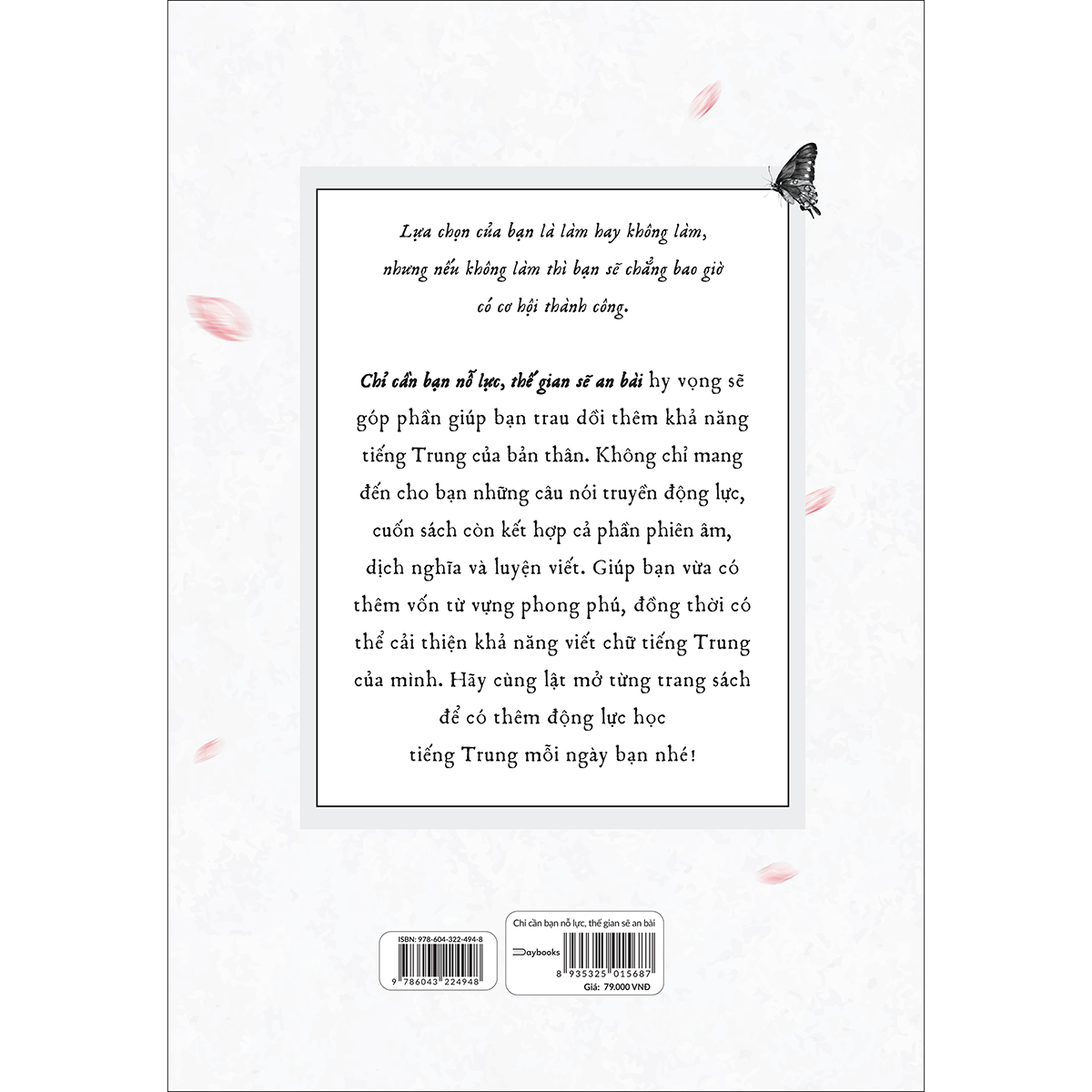 Không chỉ đơn thuần tiếp thêm động lực cho bạn trên con đường bạn lựa chọn, cuốn sách “Chỉ cần bạn nỗ lực, thế gian sẽ an bài” còn giúp bạn trau dồi thêm khả năng tiếng Trung của bản thân nữa. Thông qua 76 câu trích dẫn kèm phiên âm và dịch nghĩa, cuốn sách giúp bạn bổ sung vốn từ vựng tiếng Trung theo một cách cực kỳ gần gũi.