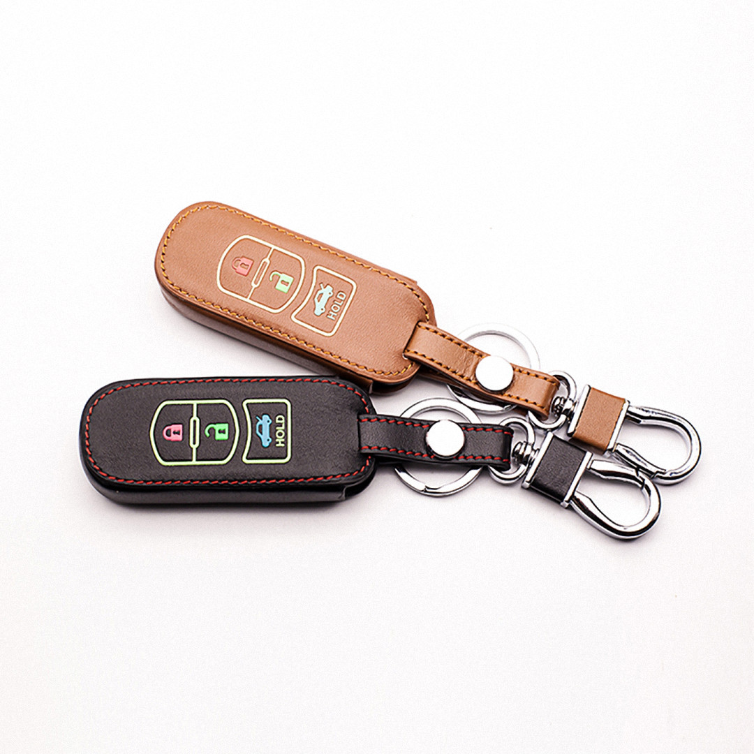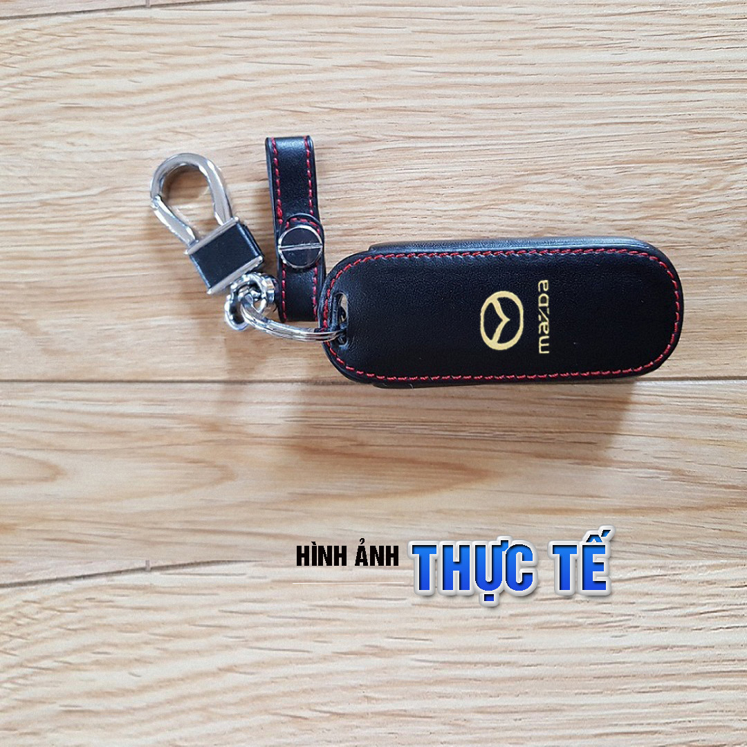 Cho xe Mazda, bao da chìa khóa 3 nút dạ quang kiêm móc khóa chất liệu da, Inox MIHOCO Mazda 3N