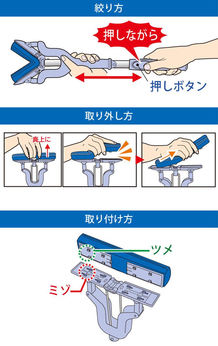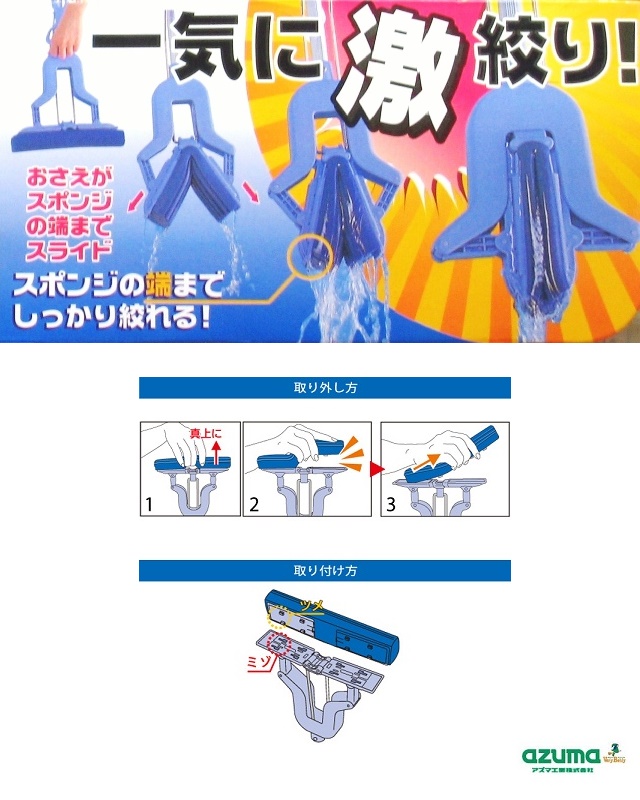 Chổi lau nhà thông minh Azuma Nhật Bản Chất liệu: Đầu lau bằng mút bọt biển Polypropylene với khả năng thấm hút nhanh, bám dính tốt, thân bằng hợp kim nhôm, bọc nhựa ABS, an