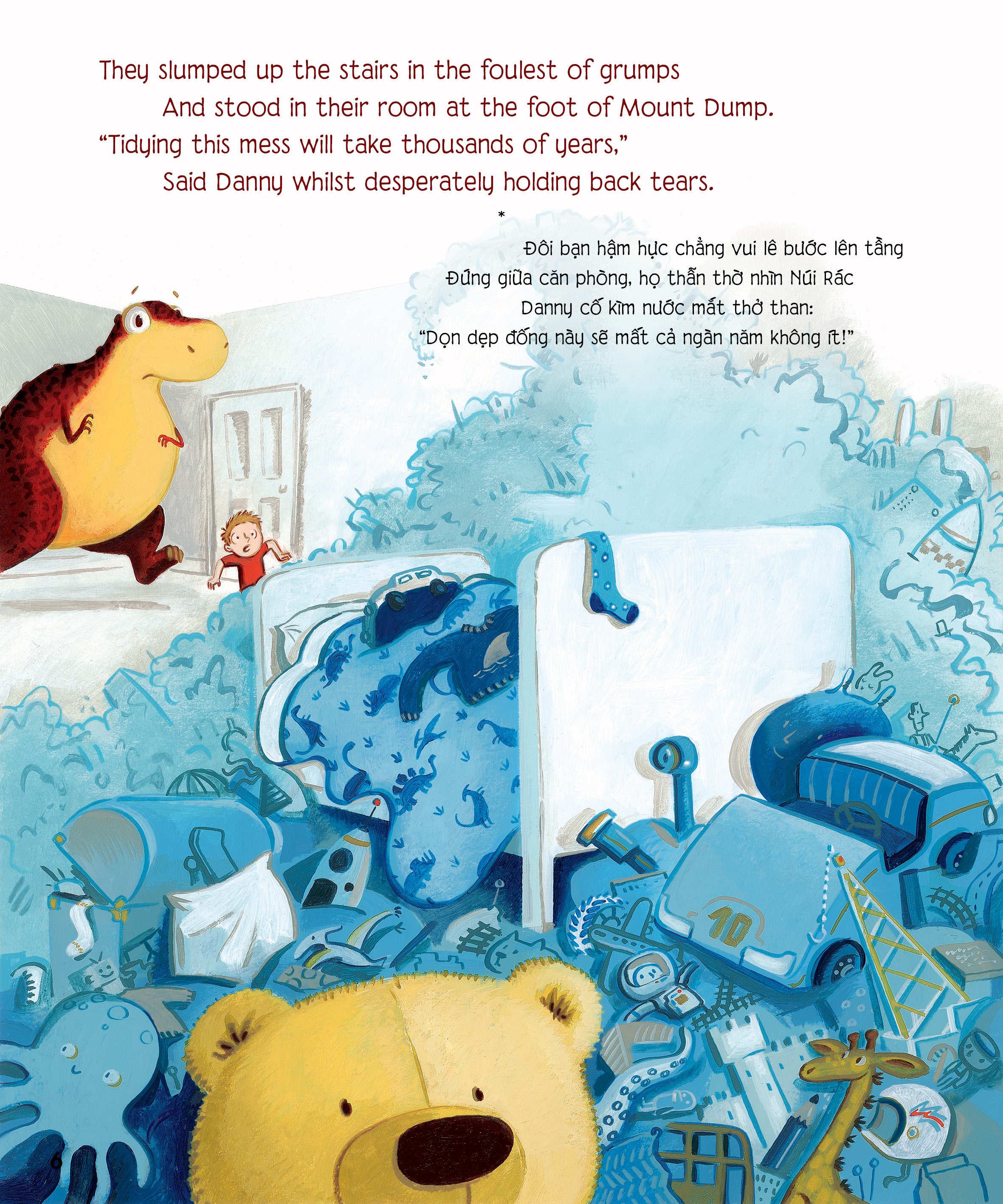 Sách - Chú khủng long tham ăn - Giải cứu chiếc giường - Bài học về thói quen gọn gàng - Phiên bản song ngữ Anh - Việt