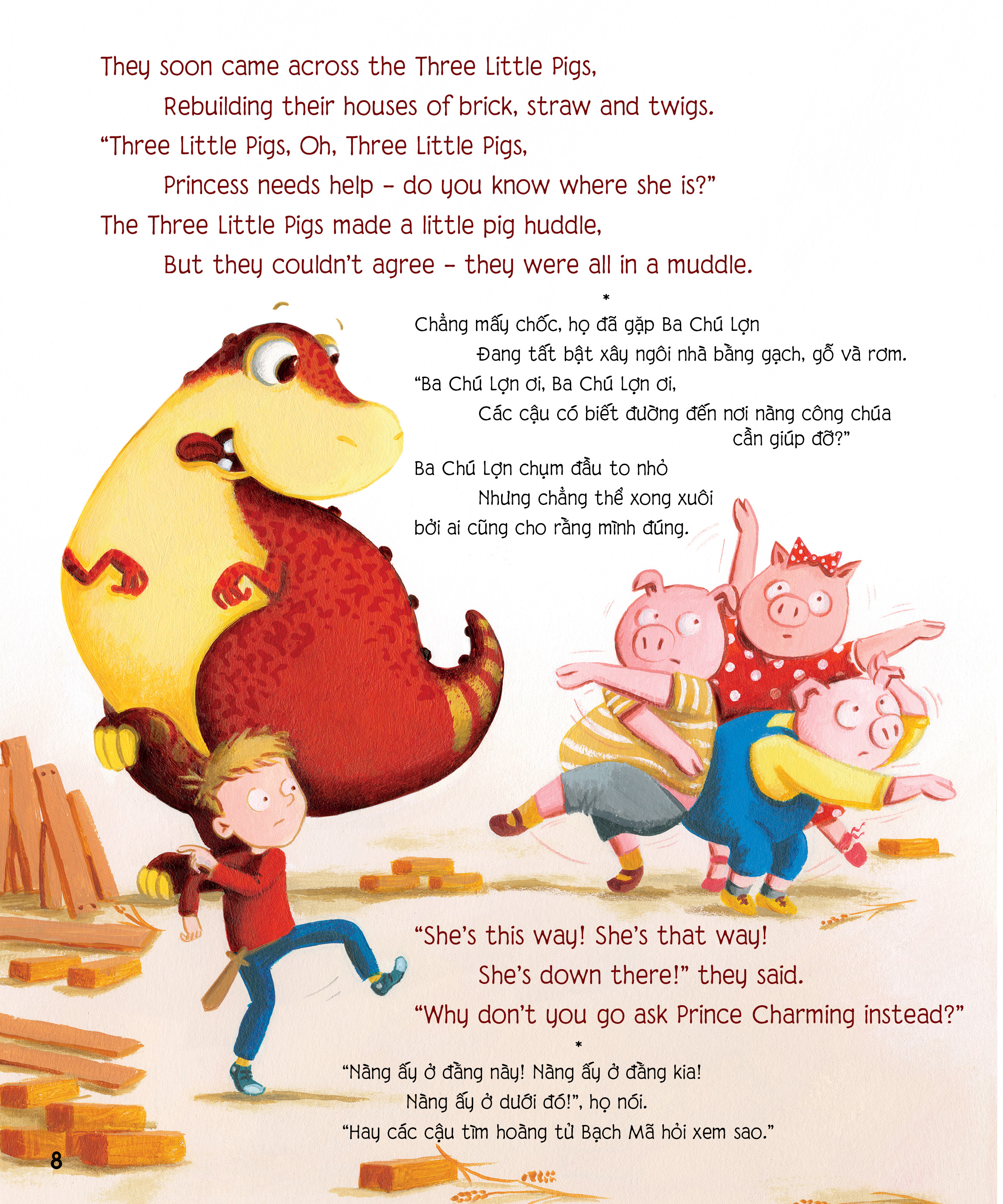 Sách - Chú khủng long tham ăn - Giải cứu công chúa - Bài học về lòng dũng cảm - Phiên bản song ngữ Anh - Việt