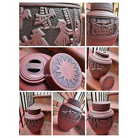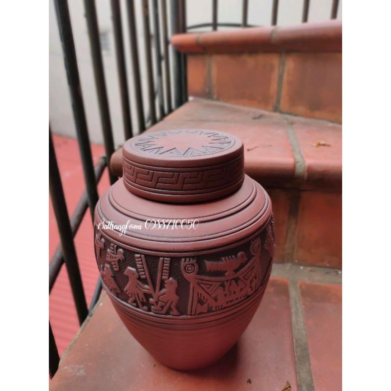 Mua tại TiktokDòng chum Sành cao cấp dùng trong Phòng Khách. ✯ Lần đầu tiên hình ảnh trống đồng được tái hiện trên chiếc chum sành độc đáo. ✯ Thiết kế đặc biệt với 2 lớp nắp, giúp cho việc sử dụng trở lên dễ dàng. ✯ Nguyên liệu đất hiếm từ thiên nhiên: Cốt đất đặc trưng của gốm Bát Tràng được cối tạo nên từ đất sét đặc biệt và phù sa của dòng sông Hồng. ✯ Thẩm thấu, khuyết tán Aldehit ra ngoài qua thành chum. Chất liệu sành cao cấp lọc bỏ tạp chất.