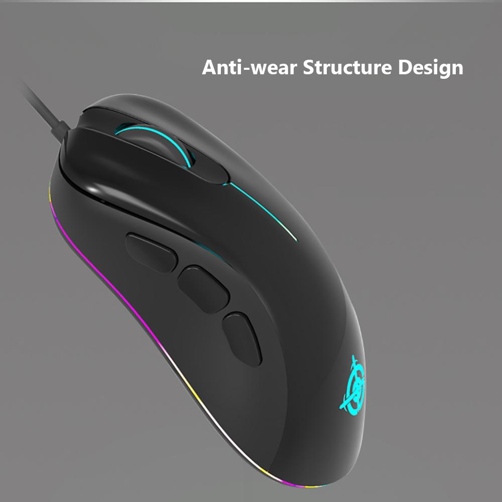 Features: High-precision Optical Sensor This mouse adopt high-precision PixArt PAW3338 optical sensor, with high sensitivity of 16000DPI, 12000fps scan rate, 1000Hz polling rate, able to withstand 40G acceleration and 400IPS movement speed, which can meet