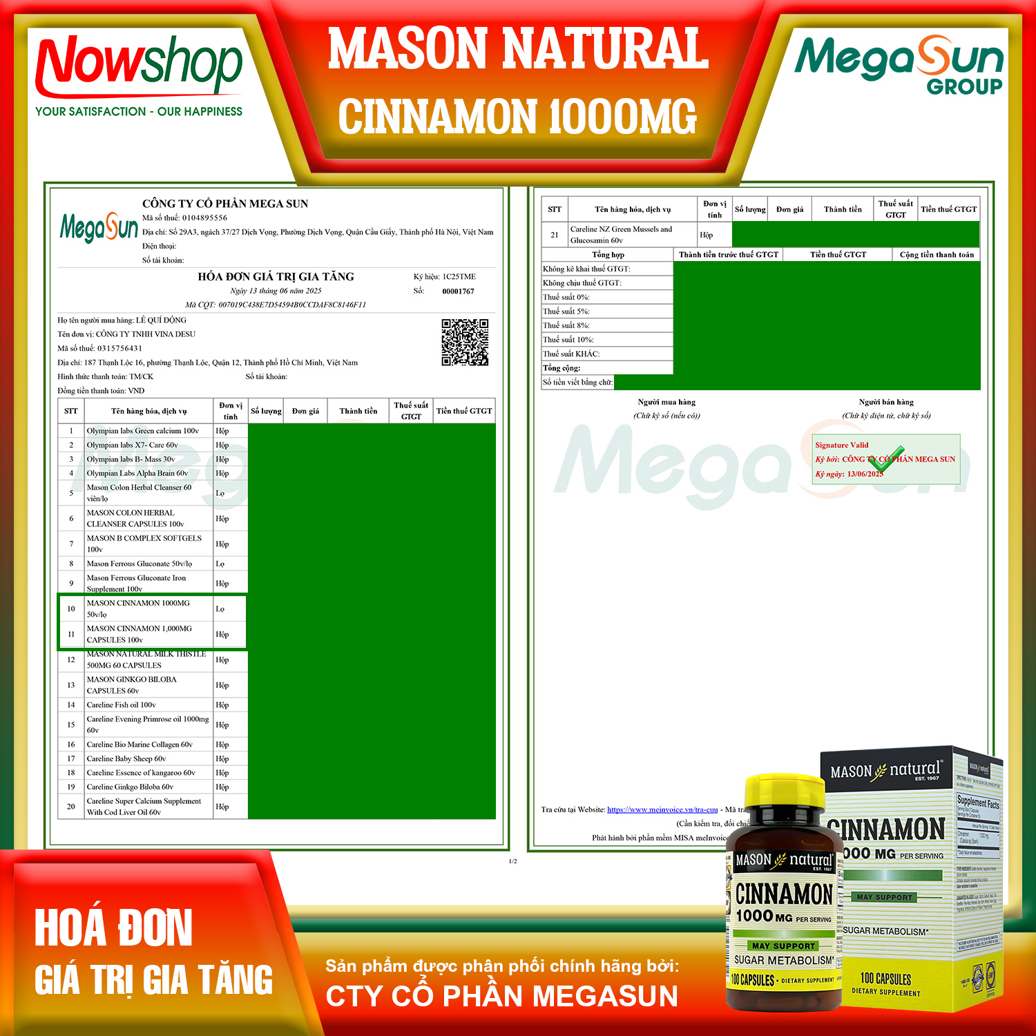 MASON CINNAMON 1000MG - ỔN ĐỊNH ĐƯỜNG HUYẾT TỰ NHIÊN - SỐNG KHỎE MỖI NGÀY! Chiết xuất quế nguyên chất 1000mg - Hỗ trợ kiểm soát đường huyết - An toàn cho sức khỏe Mason