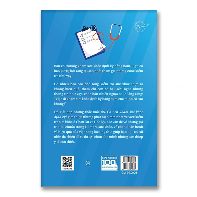 [ThaiHaBooks] Ở Nhật, thường có ba loại khám sức khỏe: khám sức khỏe tại nơi làm việc, khám sức khỏe tổng quan, khám ung thư tập trung. Nhưng theo nghiên cứu và tìm hiểu của các tác giả, khám sức khỏe không những không có lợi mà còn gây ra nhiều tác hại. Ví dụ, một người đang khỏe mạnh, sau khi kiểm tra sức khỏe lại phát hiện ra mình bị “ung thư” hoặc “cao huyết áp”, vậy là suốt phần đời còn lại, người đó sẽ phải phụ thuộc vào thuốc. Họ sẽ phải trải qua đau đớn trên bàn mổ hoặc bị mất ngủ, chán nản do trầm cảm…