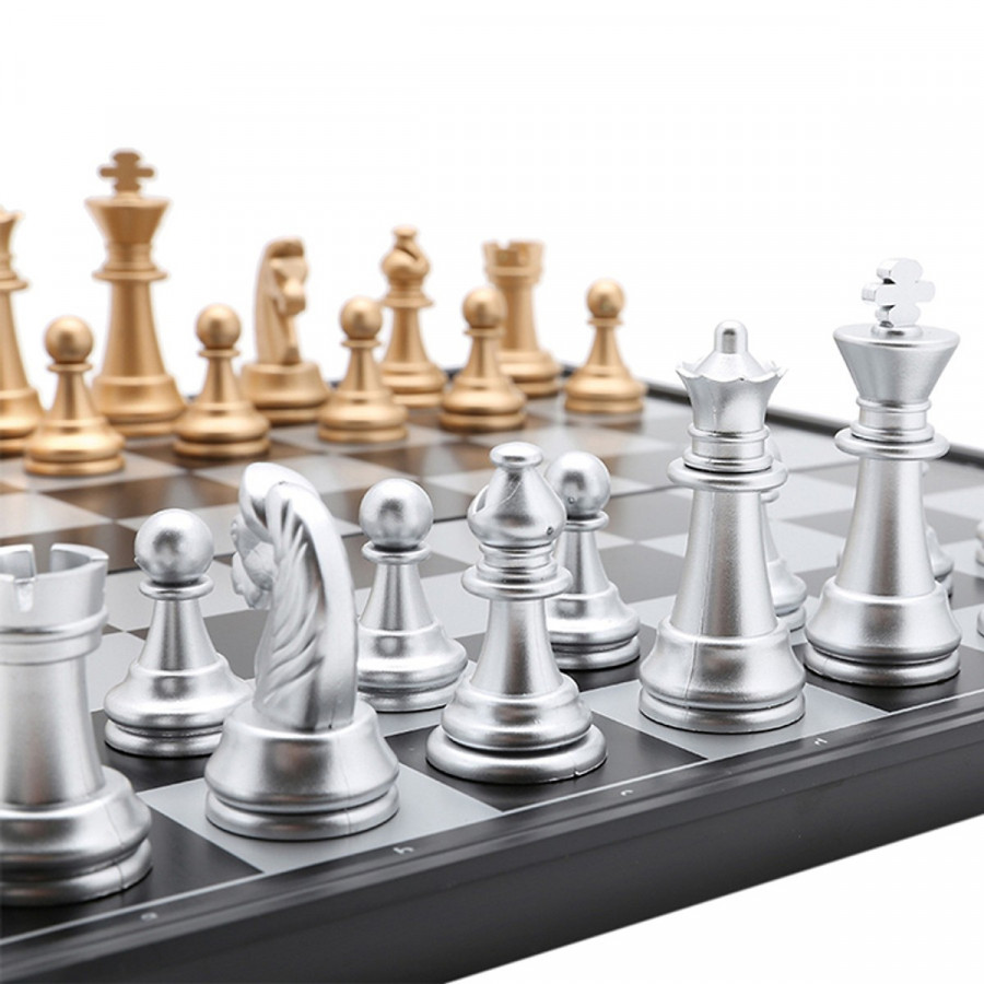 • Bộ Bàn Cờ Vua Cỡ To  bao gồm 1 bàn cờ nhựa và 32 quân cờ, với 2 màu sắc Vàng – Bạc sang trọng. Quân cờ được làm từ chất liệu nhựa cao cấp, bền đẹp và sáng bóng. Đặc biệt có nam châm giúp cho  quân cờ luôn đứng vững không đổ hay bị xê dịch.
