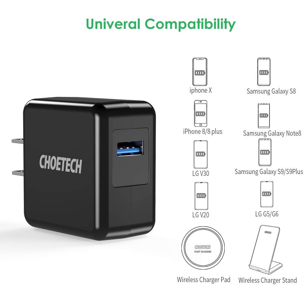 ✨Cóc củ sạc nhanh QC Qualcomm 3.0 hiệu CHOETECH HPK-Q3002US cho điện thoại / máy tính bảng (sạc nhanh QC 3.0, chip bảo vệ thông minh, thiết kế nhỏ gọn) - Hàng chính hãng