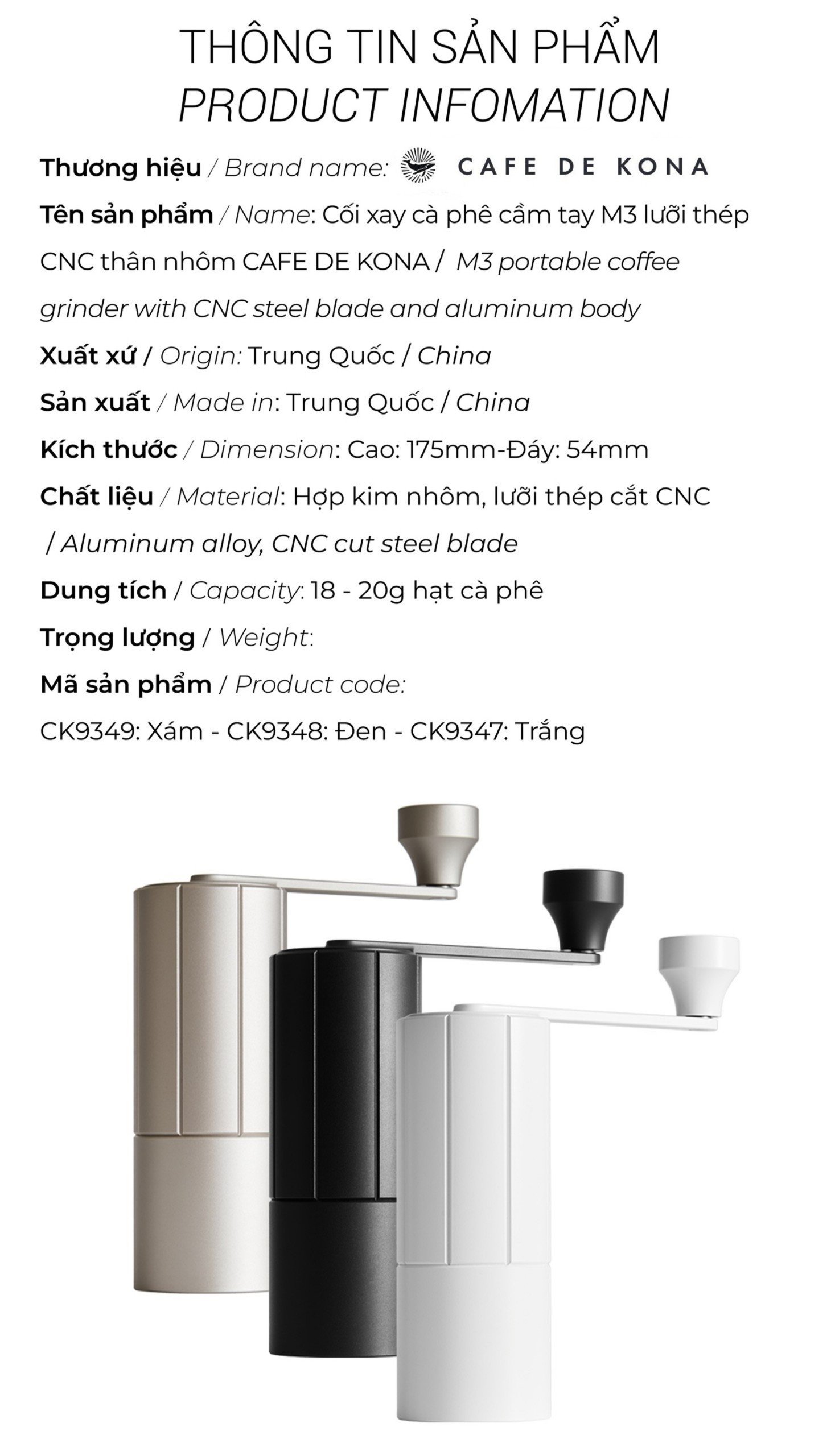 CỐI XAY CÀ PHÊ CẦM TAY M3 THÂN NHÔM LƯỠI THÉP
