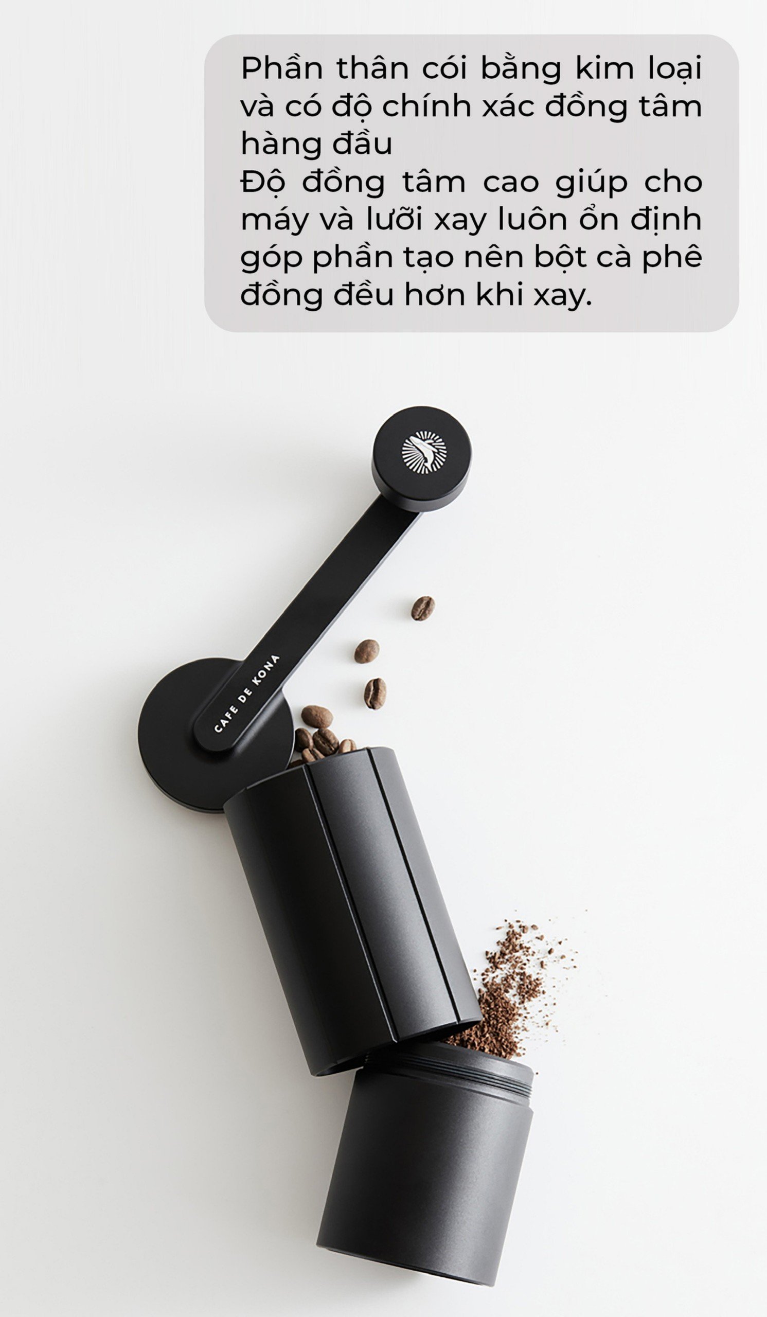 MÁY XAY CÀ PHÊ G-ONE PRO CAFE DE KONA (Kèm ly đồng đựng cà phê sau khi xay) Với thiết kế thanh mảnh nhỏ nhẹ hơn cả những dòng “mini” đang có trên