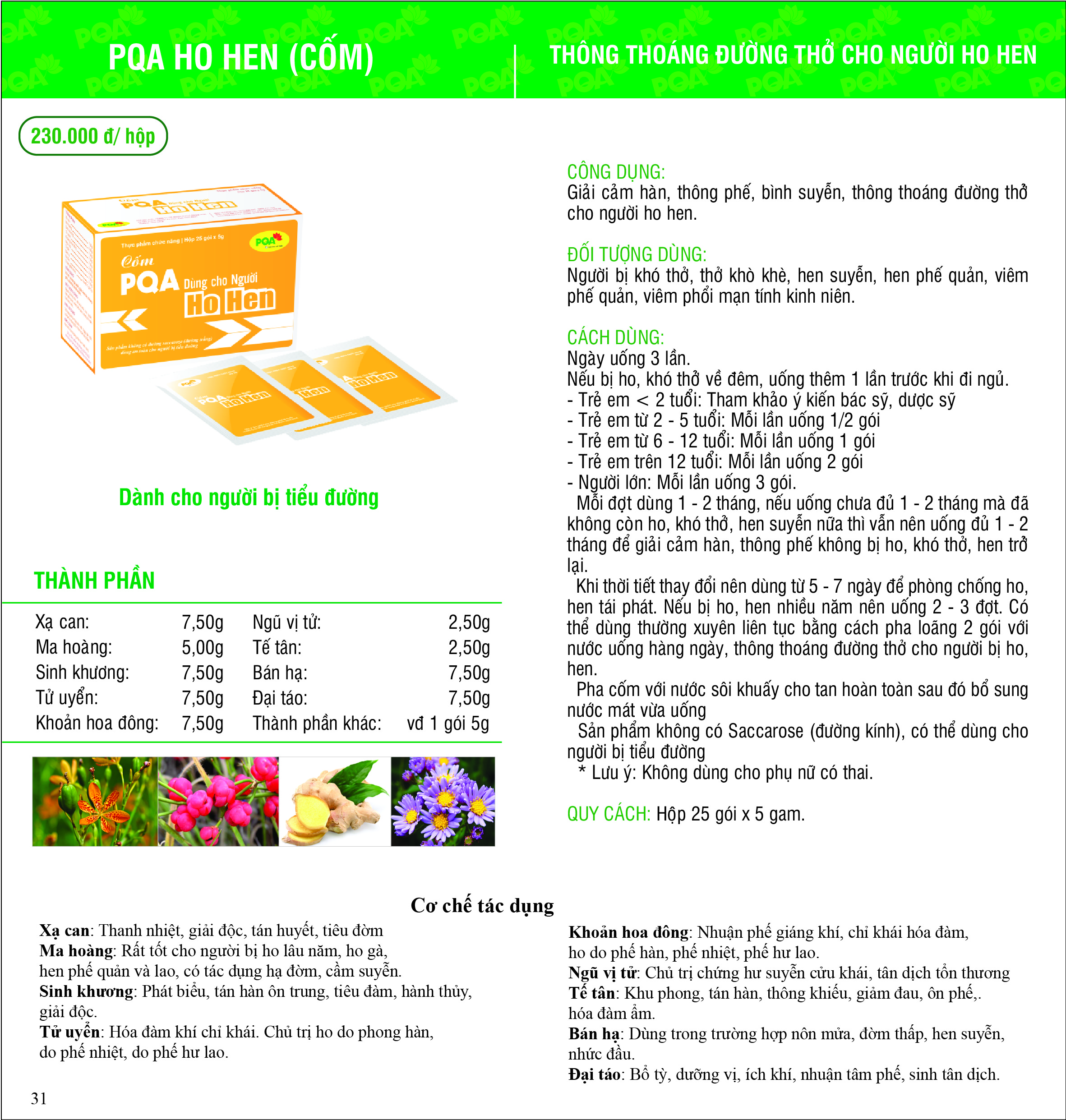 ✨Cốm Ho Hen PQA Thành Phần Từ Thiên Nhiên Hỗ Trợ Thanh Họng, Bổ Phổi, Giảm Ho Và Hen Suyễn Hộp 25 Gói