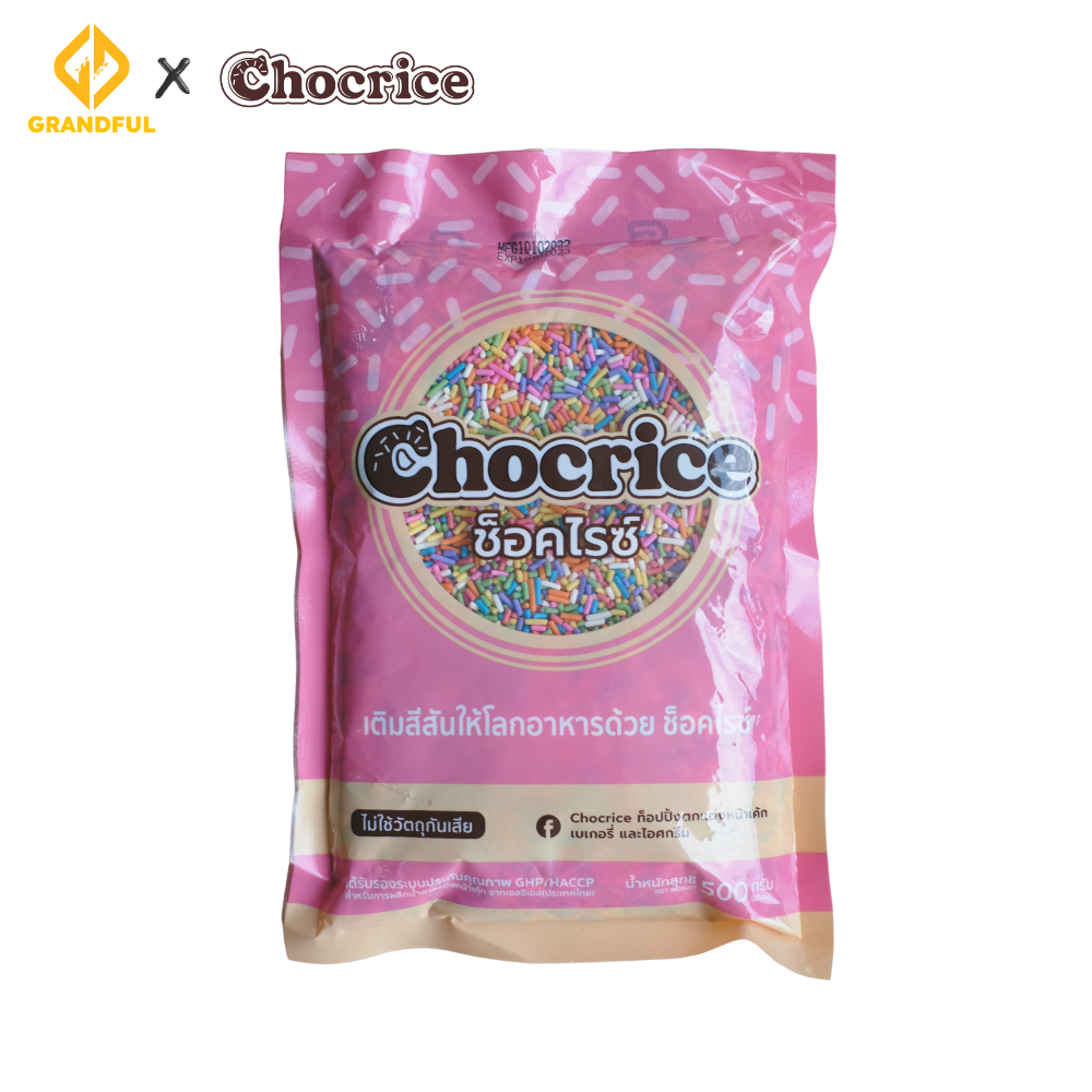 Cốm Màu Chocrice Cốm màu trang trí thực phẩm thương hiệu Chocrice của Thái Lan. Đặc biệt có 4 loại - Cốm hình gạo - Cốm hình vuông - Cốm hình đá - Cốm bi Với