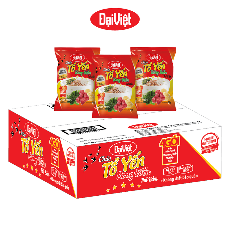 Với sản phẩm tươi sống, trọng lượng thực tế có thể chênh lệch khoảng 10%. Cháo Tổ Yến Bào Ngư Thịt Bằm Đại Việt - Ăn Liền – Gói 50gr - Thùng 30 gói: -