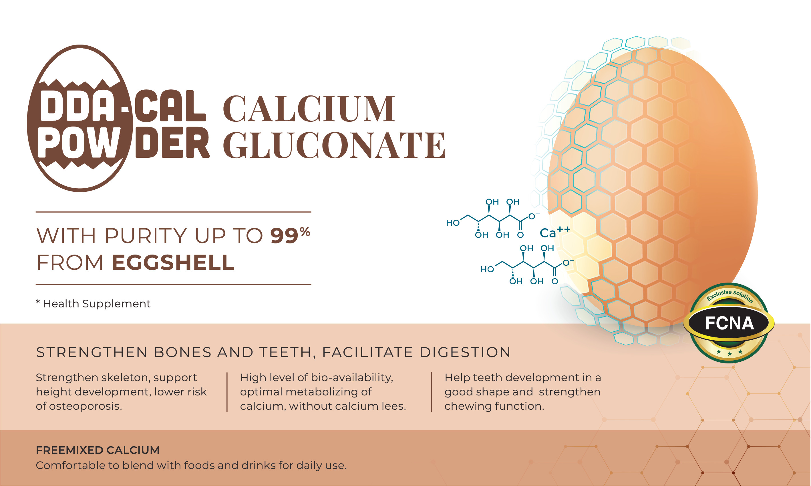 Thực phẩm chức năng canxi hữu cơ DDA chiết xuất từ vỏ trứng gà tinh khiết 99.9% dạng bột hoà tan nhanh, hỗ trợ giúp hệ xương chắc khoẻ, giảm loãng xương, còi xương, tăng chiều