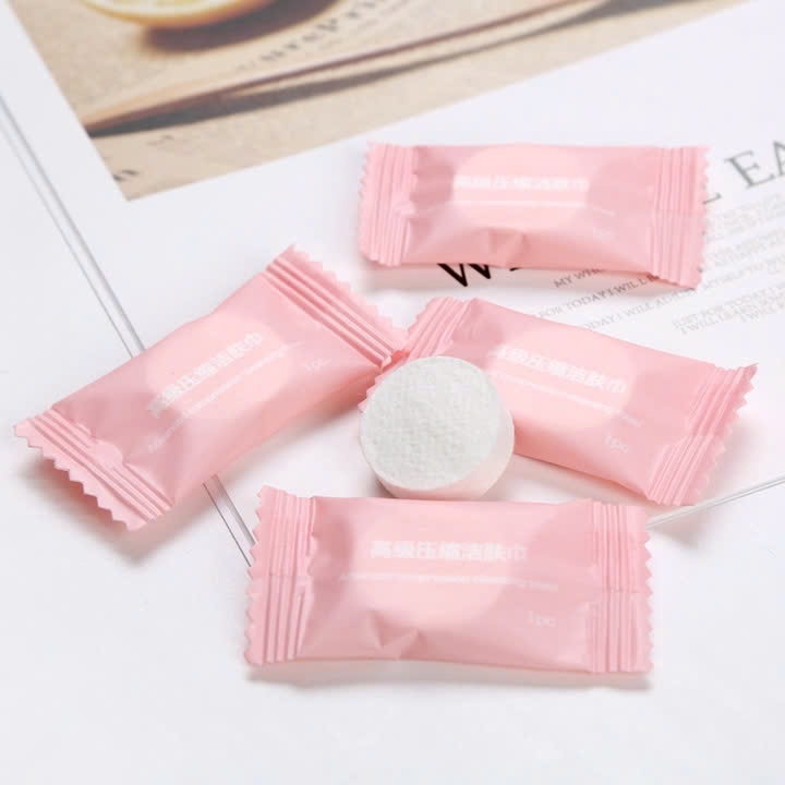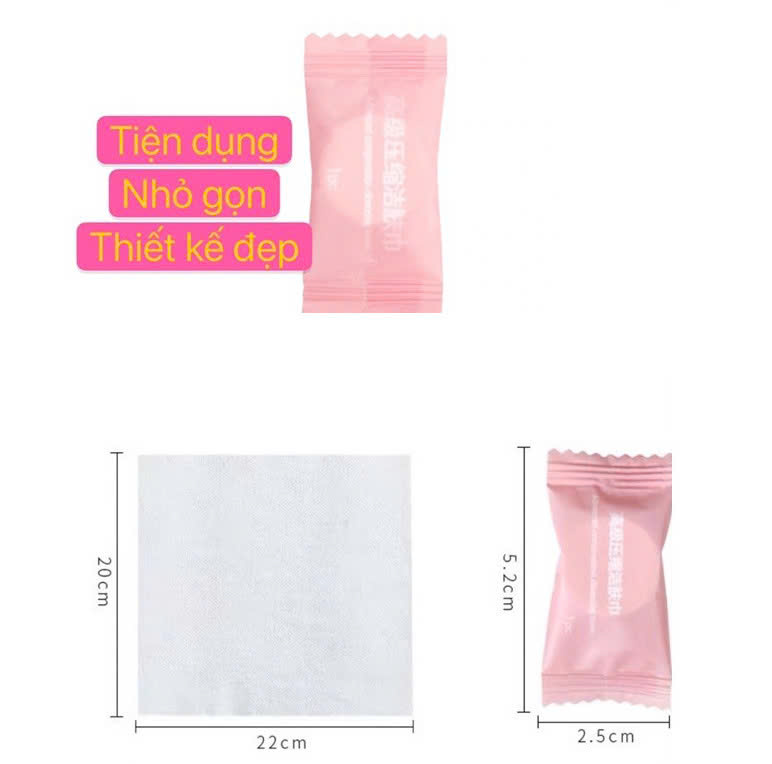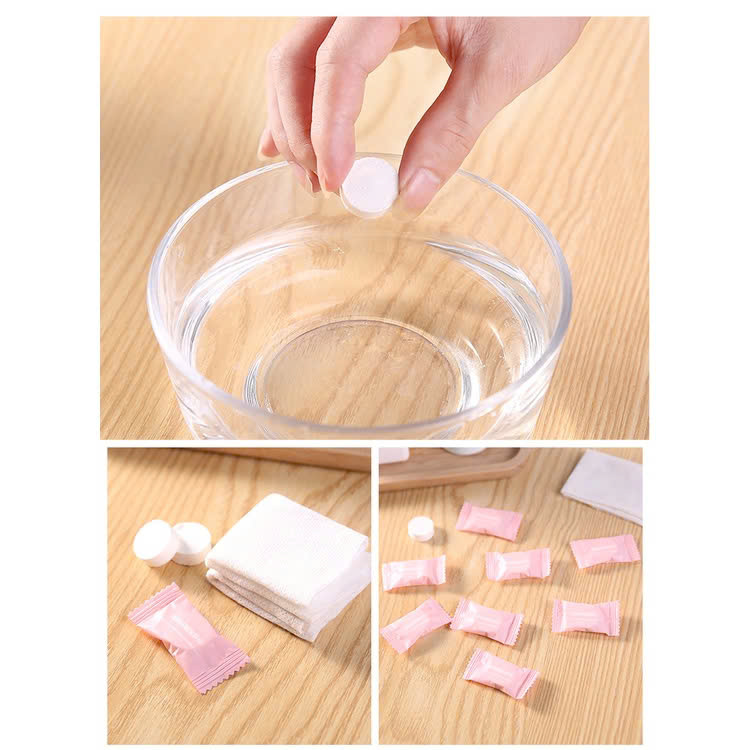 - Sử dụng 1 lần tiện lợi – Khăn giấy nén du lịch dạng viên kẹo nhỏ gọn dễ dàng mang theo bên mình, khi cần chỉ cần nhúng nước, sẽ có ngay 1 chiếc khăn ướt. – Sản phẩm khăn giấy nén tiện lợi cho mua hè, du lịch, giã ngoại ... HƯỚNG DẪN SỬ DỤNG – Cho khăn giấy nén vào ly nước và đợi nở ra rồi vắt khô. Sau khi thoa sửa rữa mặt, dung dịch tẩy trang hoặc tẩy tế bào chết lên da, dùng miếng khăn giấy massage và lau nhẹ nhàng.