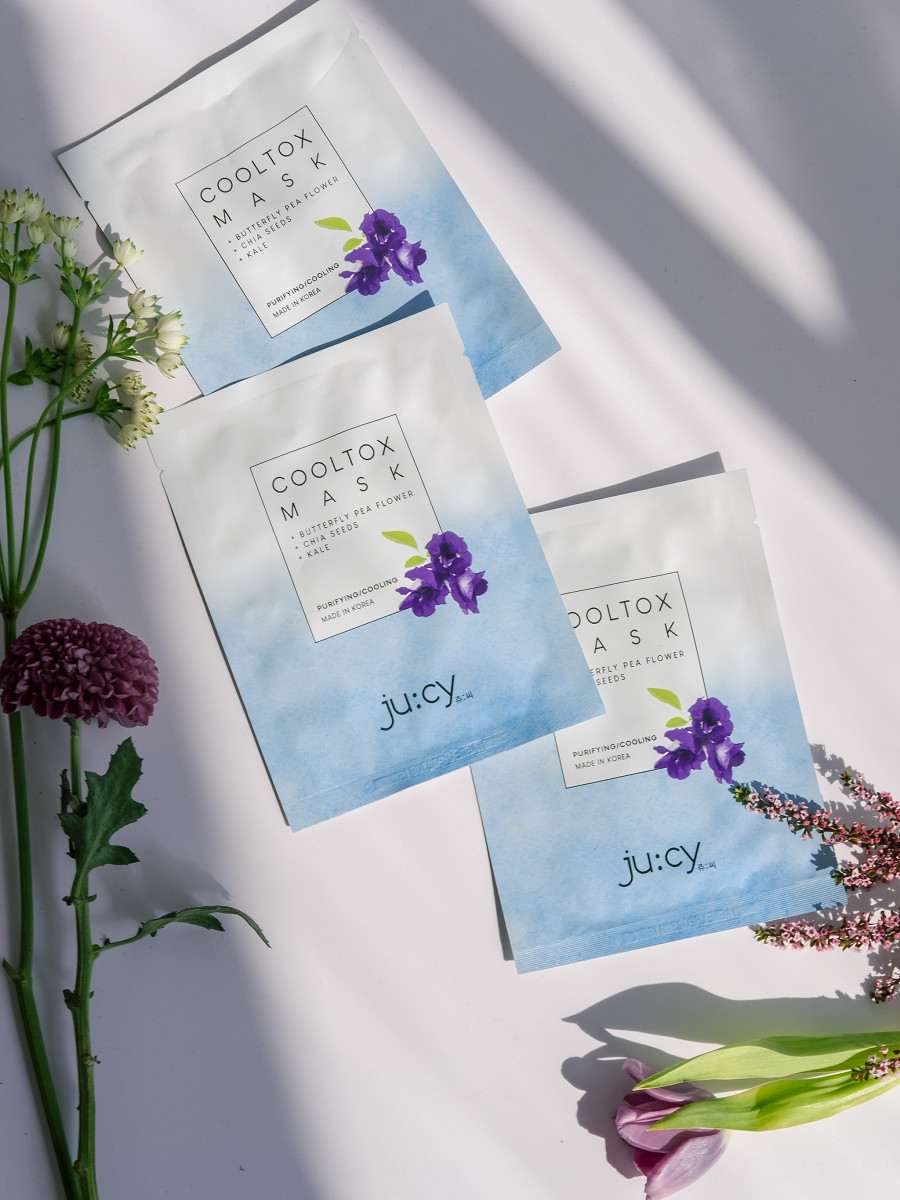 Mặt nạ Ju:cy Cooltox Mask xuất xứ từ Hàn Quốc, với chất liệu thuần chay (Vegan Certified Sheet) - được làm từ sợ thiên nhiên rất tốt cho da nhạy cảm, khả năng thấm hút gấp 1,5 lần so với cotton giúp tăng cường độ ẩm cho da.