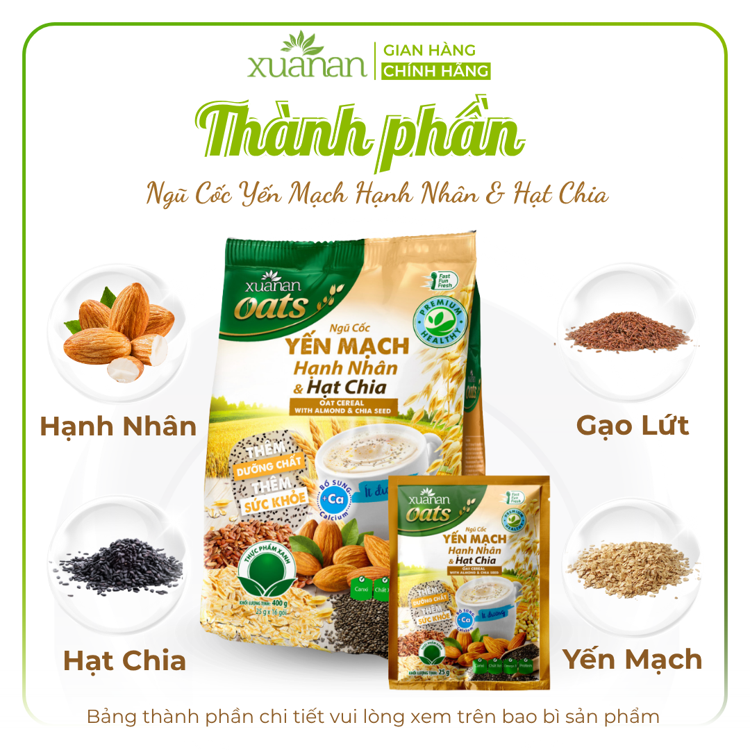 COMBO 11 TÚI NGŨ CỐC YẾN MẠCH HẠNH NHÂN HẠT CHIA [ÍT ĐƯỜNG] – TÚI 400G (25G*16 GÓI)