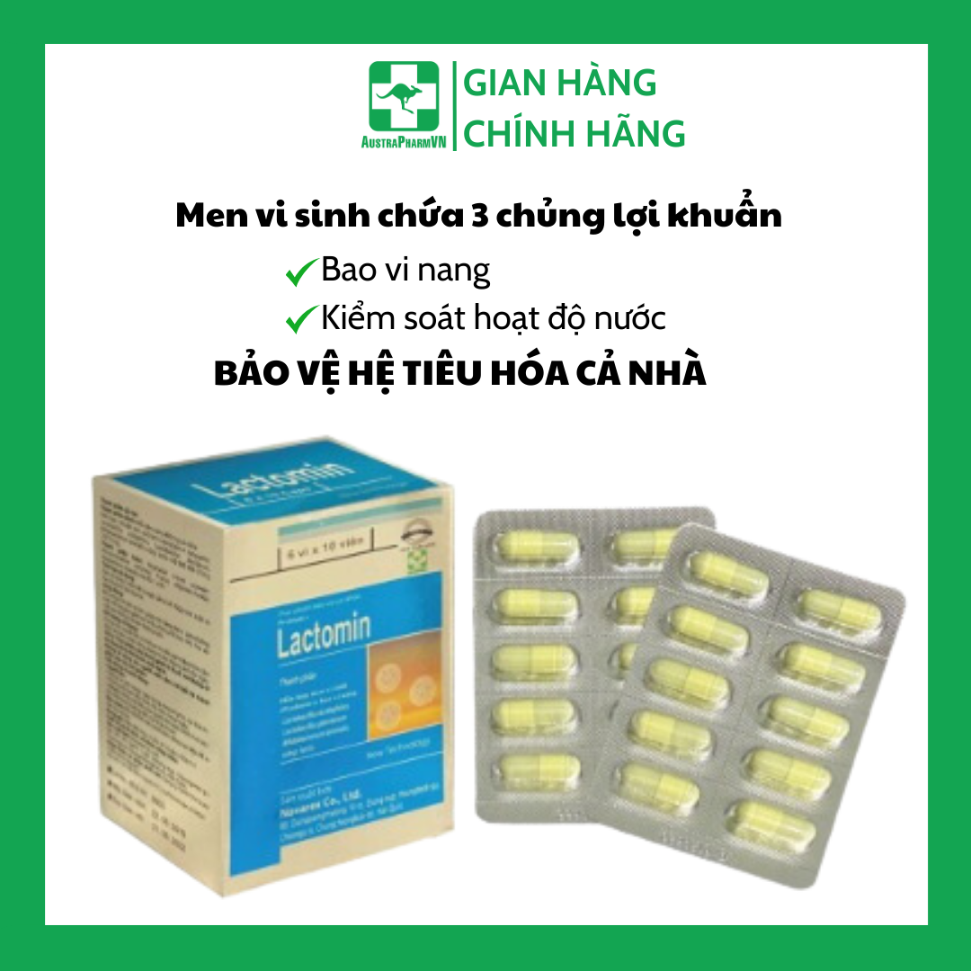 Men vi sinh LACTOMIN hộp 6 vỉ, 10 viên/vỉ, nhập khẩu hoàn toàn từ Hàn Quốc, đã được lưu hành và tin dùng tại Việt Nam hơn 20 năm. *CÔNG DỤNG: