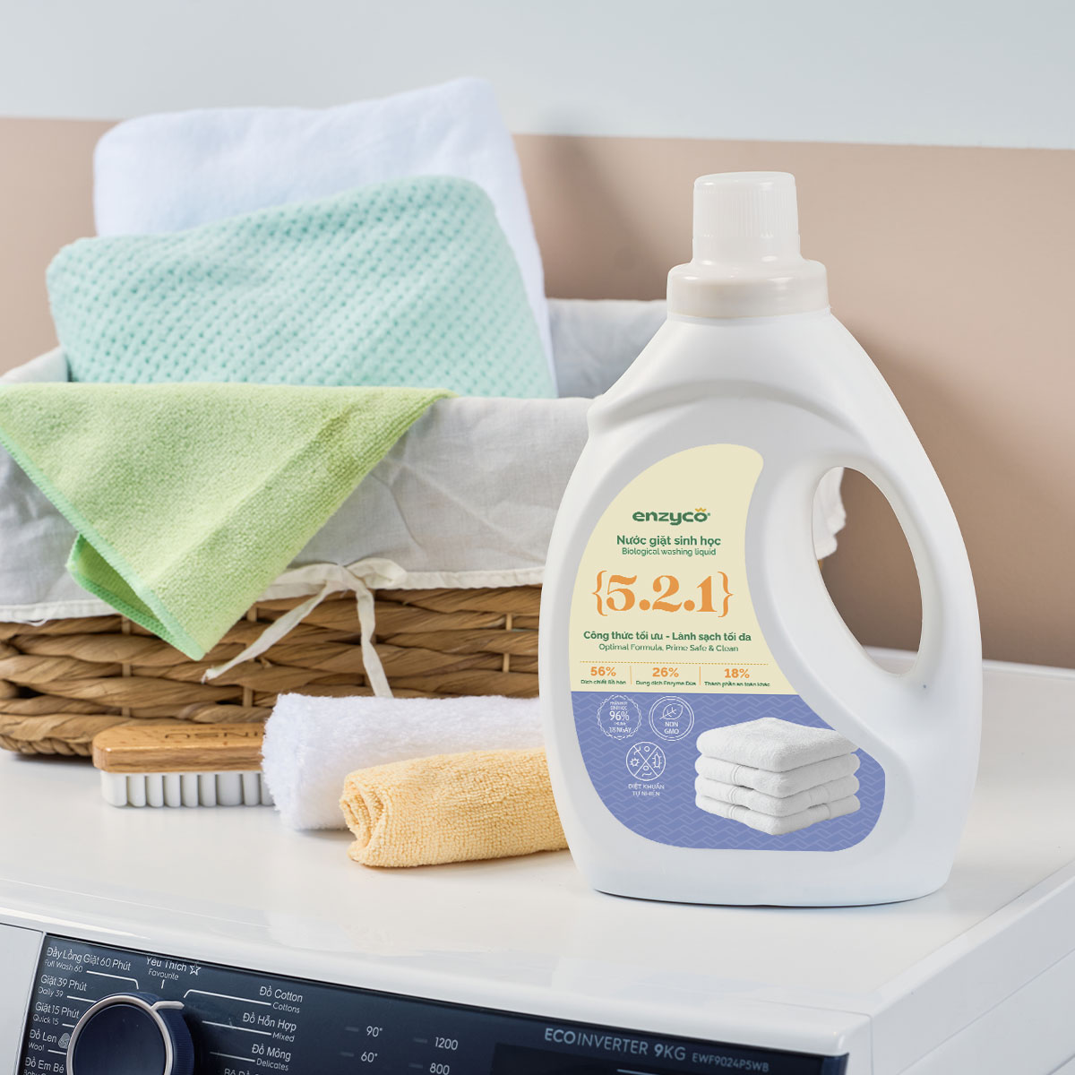 Nước giặt sinh học Enzyco là dòng nước giặt sinh học cao cấp chiết xuất từ Bồ hòn và Enzyme từ vỏ dứa, có khả năng diệt khuẩn tự nhiên cùng hương thơm tự nhiên từ tinh dầu bạc hà. Làm sạch mạnh mẽ mà vẫn lành tính. Không chỉ dừng lại ở lo lắng, chúng tôi đã hành động.  Từ 2020 tới nay, chúng tôi, đội ngũ kỹ sư, chuyên gia công nghệ sinh học đã cùng nhau nghiên cứu và tìm giải pháp làm sao để tạo ra sản phẩm không chỉ LÀM SẠCH mà còn phải AN LÀNH thực sự.  “An lành cho người dùng, cho người nông dân khi trồng trọt thu hái, cho người công nhân khi sản xuất và cho cả đất mẹ thân yêu.” Chúng tôi nghiên cứu, cải tiến liên tục và tới nay đã tìm ra công thức tối ưu dựa trên hai nguyên liệu chính từ thiên nhiên mà từ lâu đã được công nhận rộng rãi về khả năng làm sạch diệu kỳ: Saponin trong quả bồ hòn và Enzyme từ dứa!