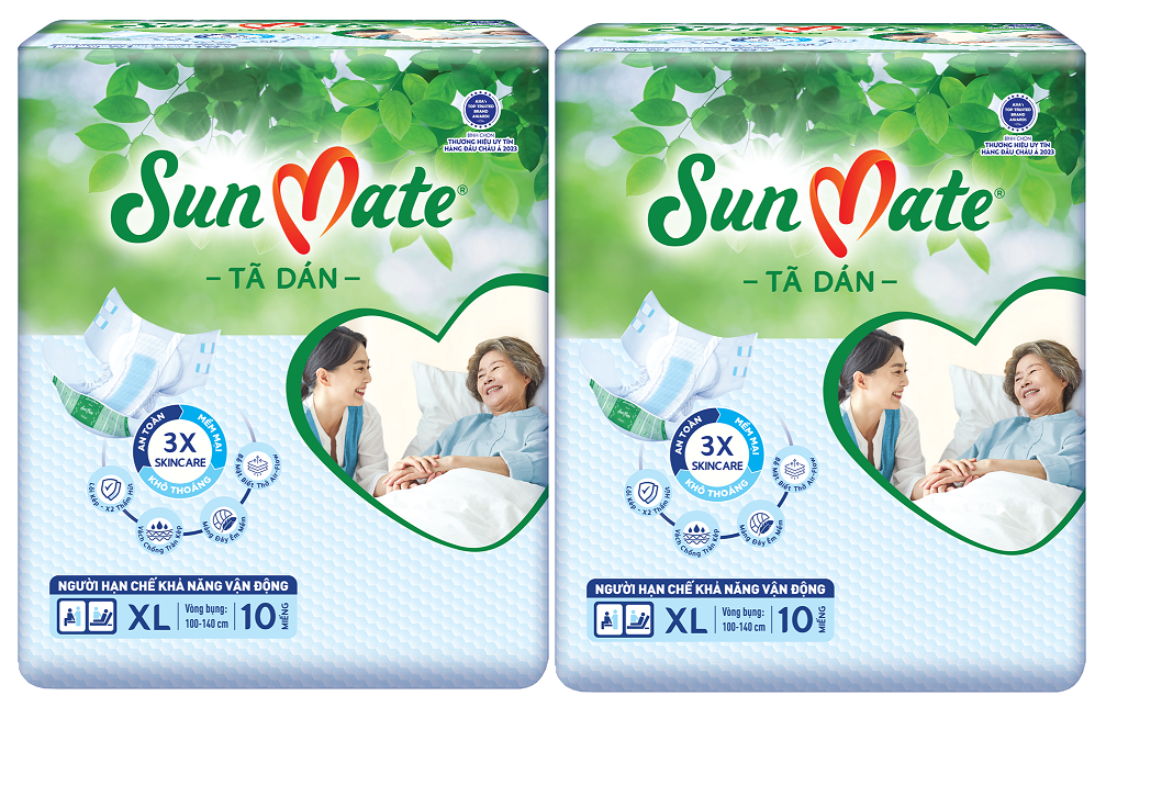 - Với công nghệ tiên tiến nhất tạo ra các sản phẩm mềm mại, thoáng khí, khả năng kháng khuẩn, nhằm giảm thiểu sự phát triển mùi và thấm hút cực nhanh, SunMate là lựa chọn tối ưu cho việc chăm sóc vệ sinh người cao tuổi, giúp họ luôn thoải mái, an toàn tự tin vui sống mỗi ngày. SunMate là người bạn đồng hành giúp chăm sóc người thân yêu tốt nhất.