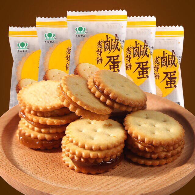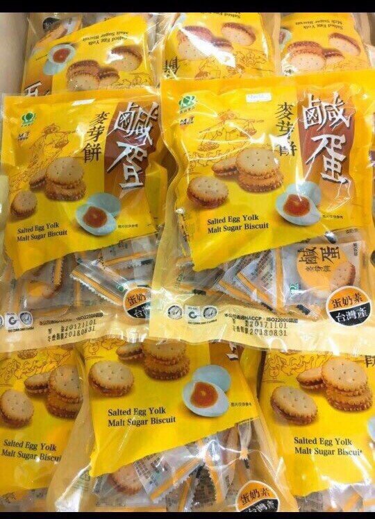 Bánh quy trứng muối Đài Loan Taiwan 500g - Bánh ngon cực đỉnh, dễ gây nghiện cực HOT được các bạn trẻ săn lùng. Chiếc bánh quy giòn kẹp lớp nhân trứng muối thơm lừng, sánh dẻo mạch nha, ngon khó cưỡng. Hương vị của bánh chinh phục được khẩu vị trẻ em cũng như người lớn, ngày càng được nhiều người lựa chọn.