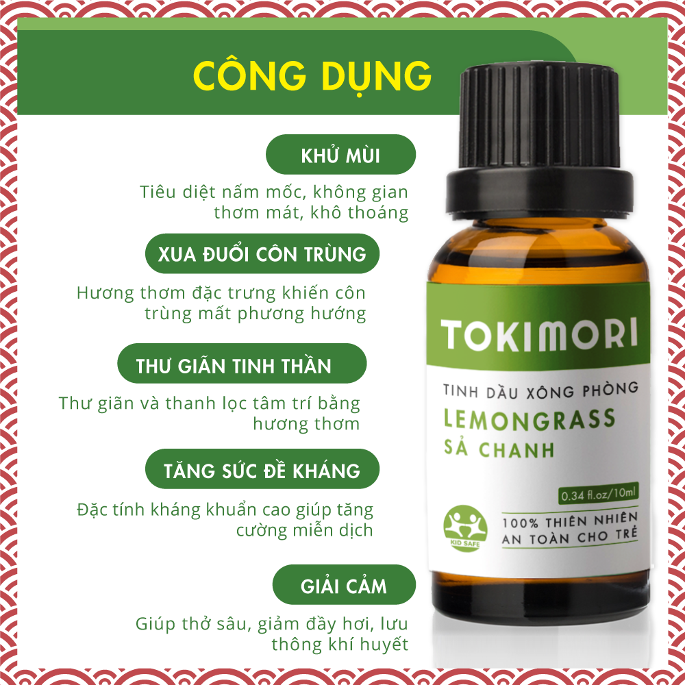 Tinh Dầu Sả Chanh Treo Xe TOKI MORI Xuất Khẩu Nhật Bản (10ml) Nguyên Chất Thiên Nhiên,An Toàn Cho Trẻ, Xông Phòng, Khử Mùi, Thơm Xe, Chống Ói, Kháng Khuẩn.   5 LÝ DO ĐỂ