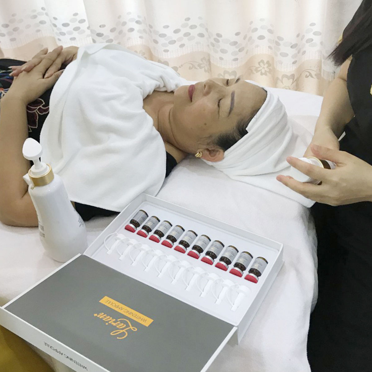 Đặc điểm sản phẩm: Whitening ampoule giúp ức chế sản xuất melanin, loại bỏ thâm nám, tàn nhang. Cung cấp các dưỡng chất làm trắng sáng da, đồng đều màu da. Tái tạo, phục hồi